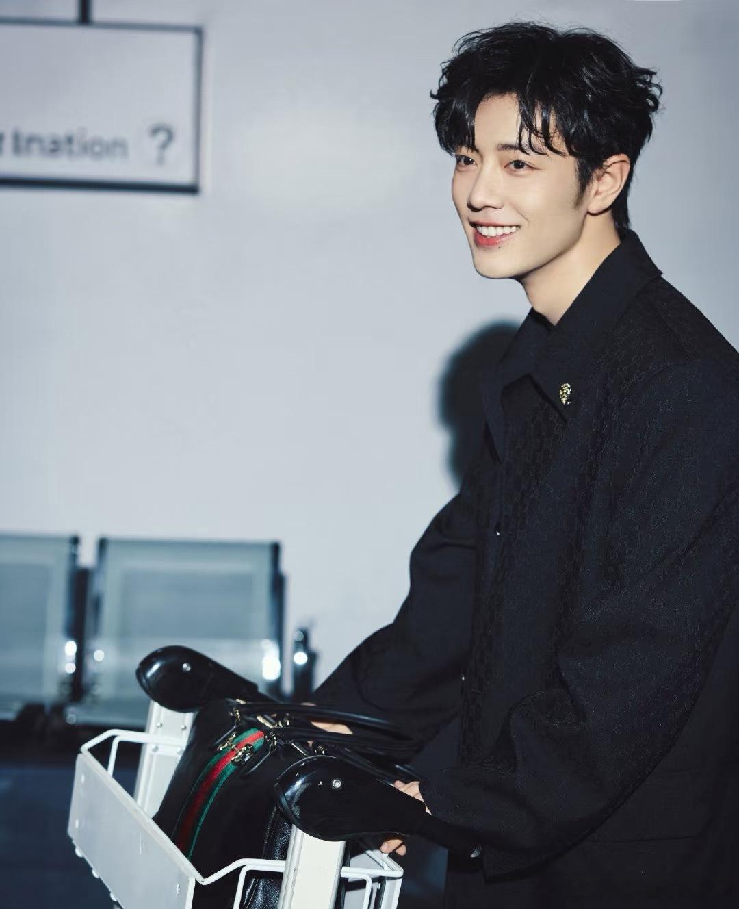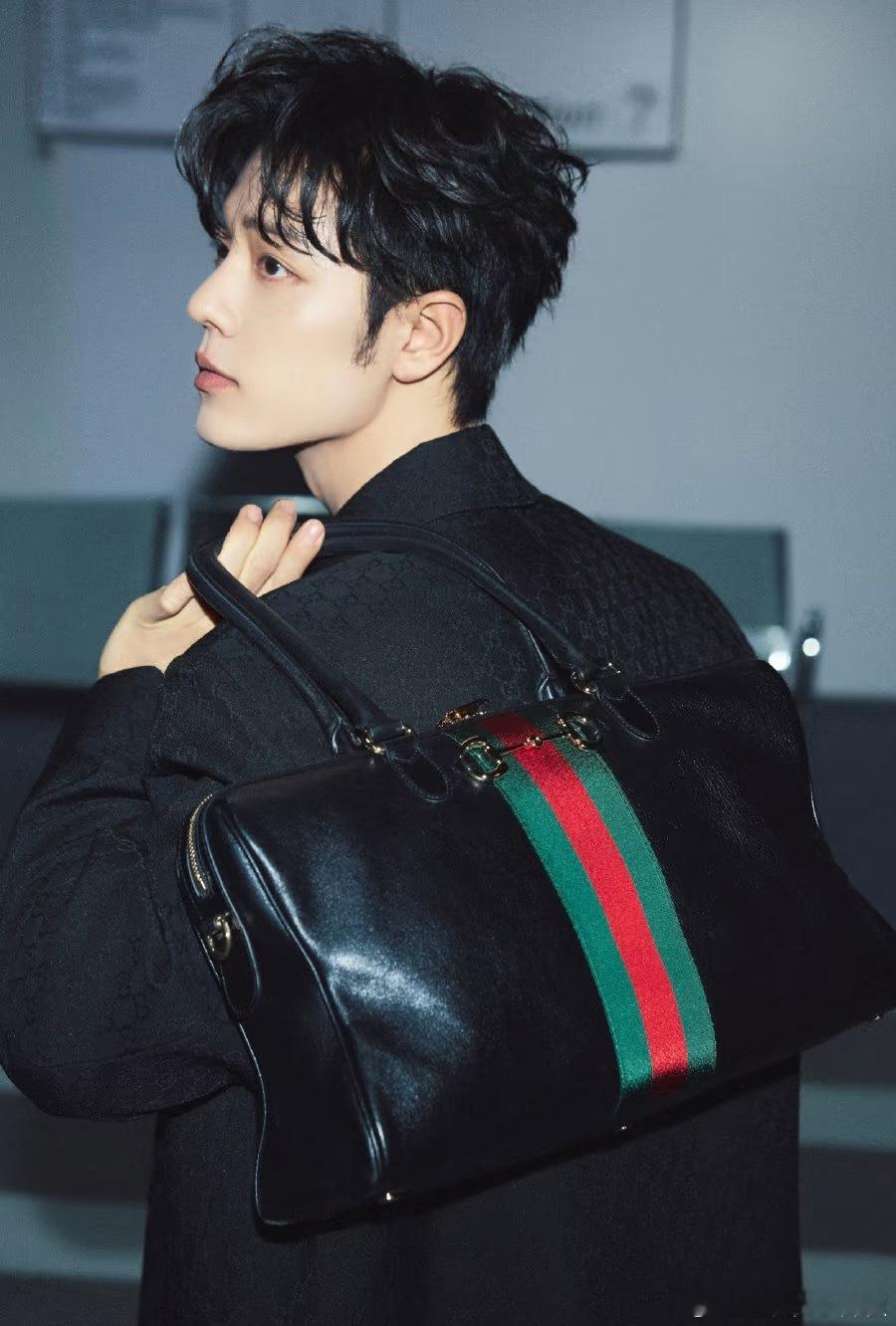 肖战Gucci时装周出发图,就是这个范儿,高冷中带点甜,又被这哥拽到了