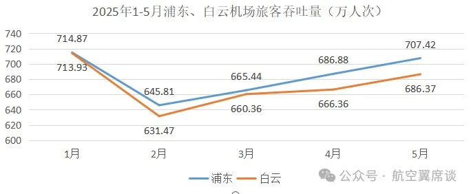 不过到了5月份,浦东机场突然发力,扩大了对白云机场的领先优势。