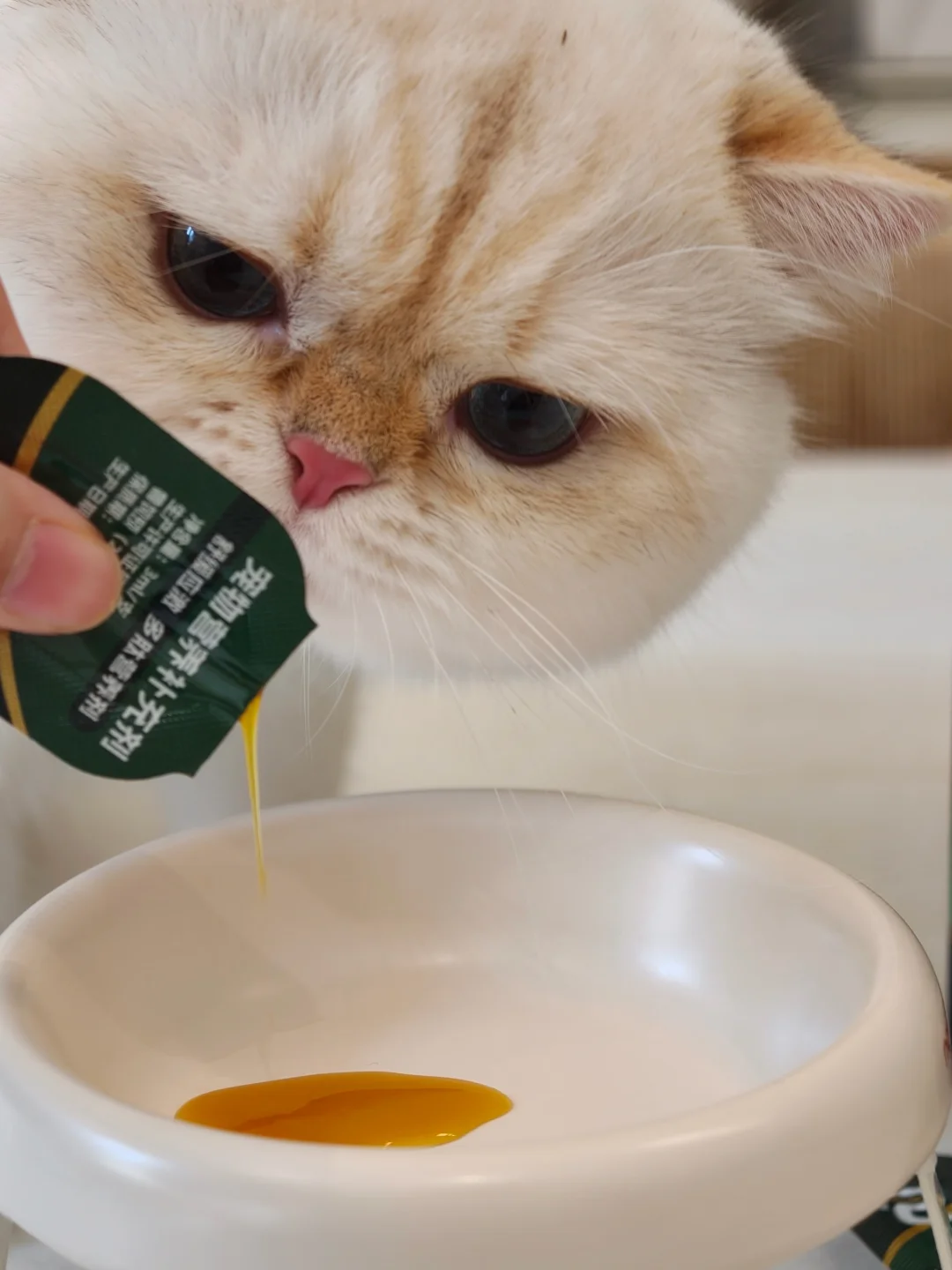 ▪️ 喂食0压力:液态质地,直接挤在粮上或者嘴里都行,我家猫属于挑嘴怪,但这玩意它居然光盘。