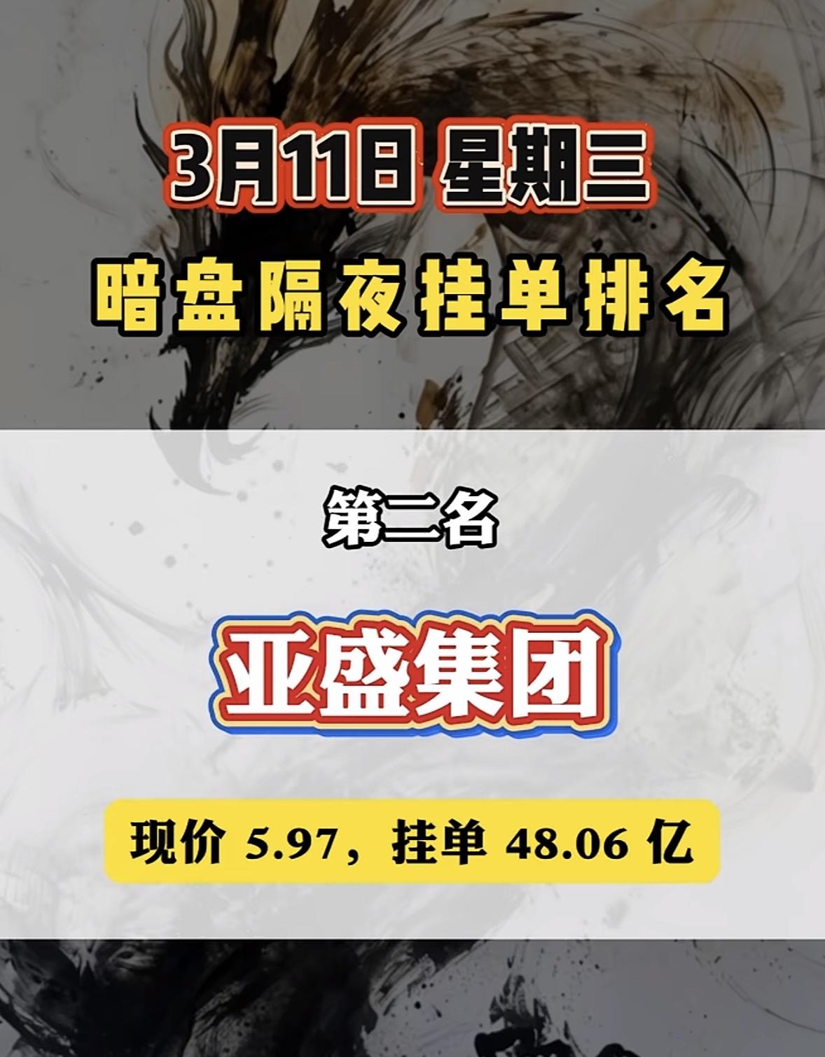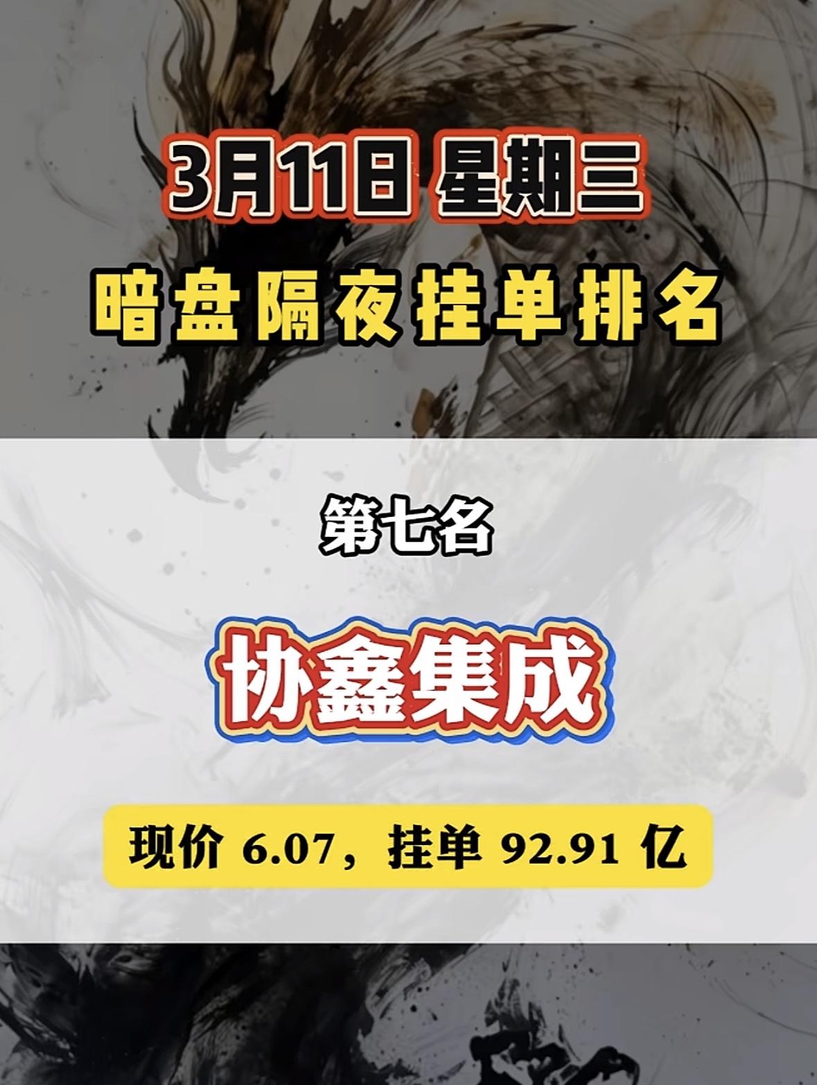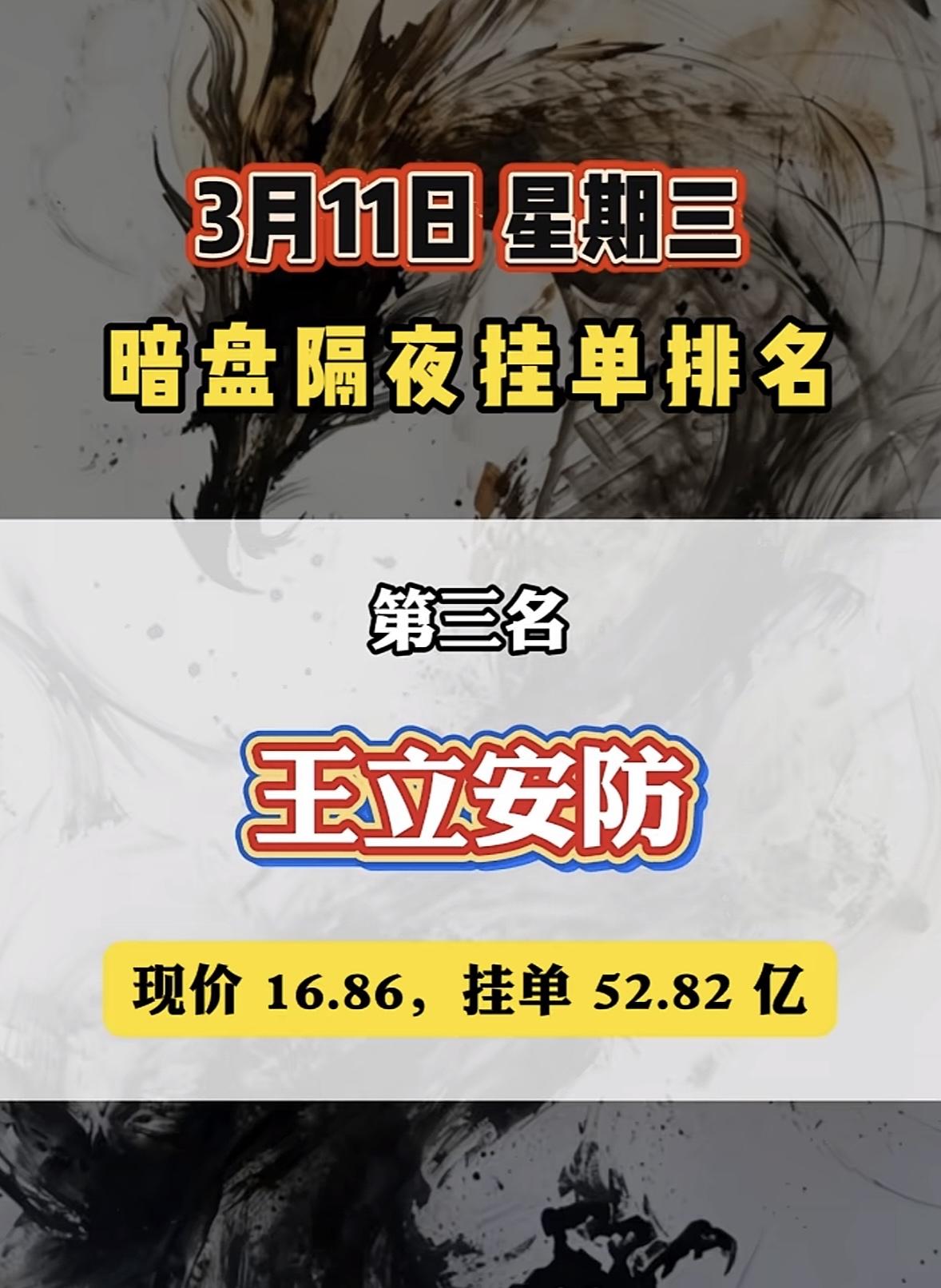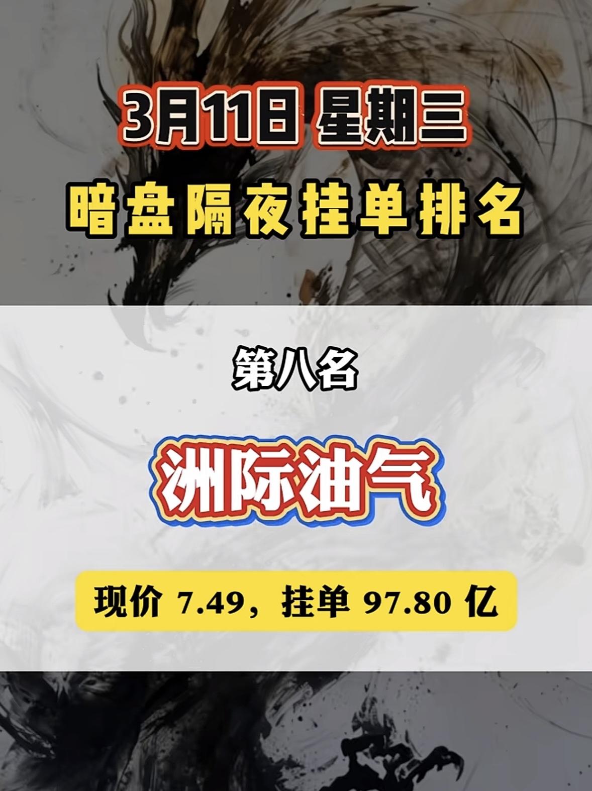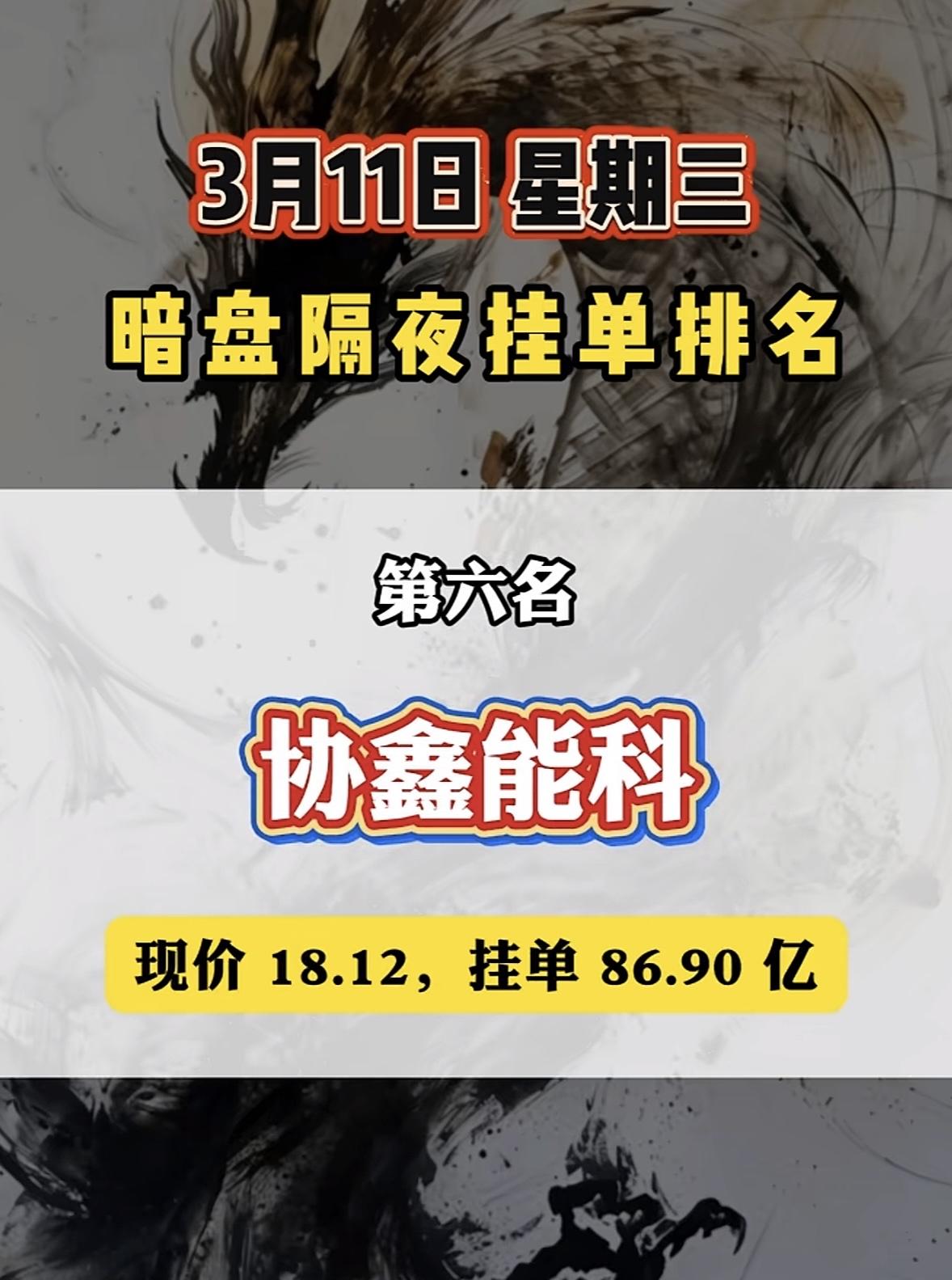 3月11日暗盘隔夜挂单排名前8揭晓,这可太让人兴奋了!
