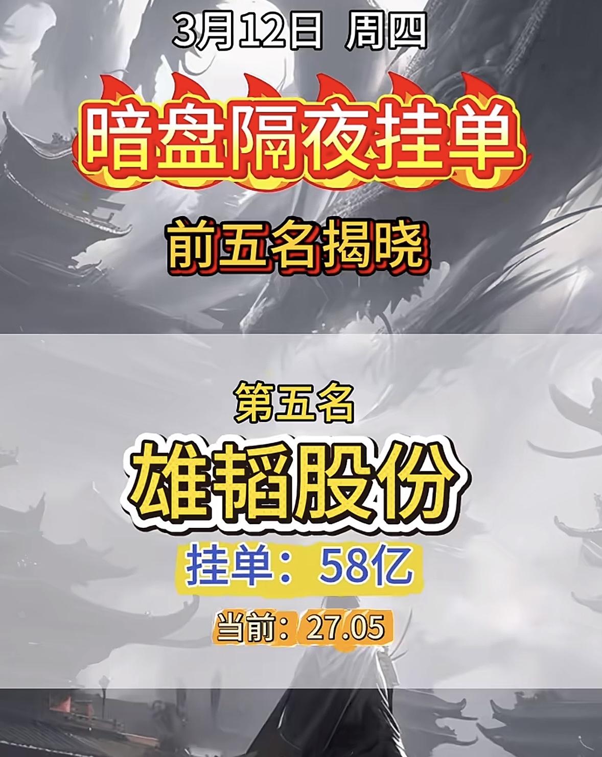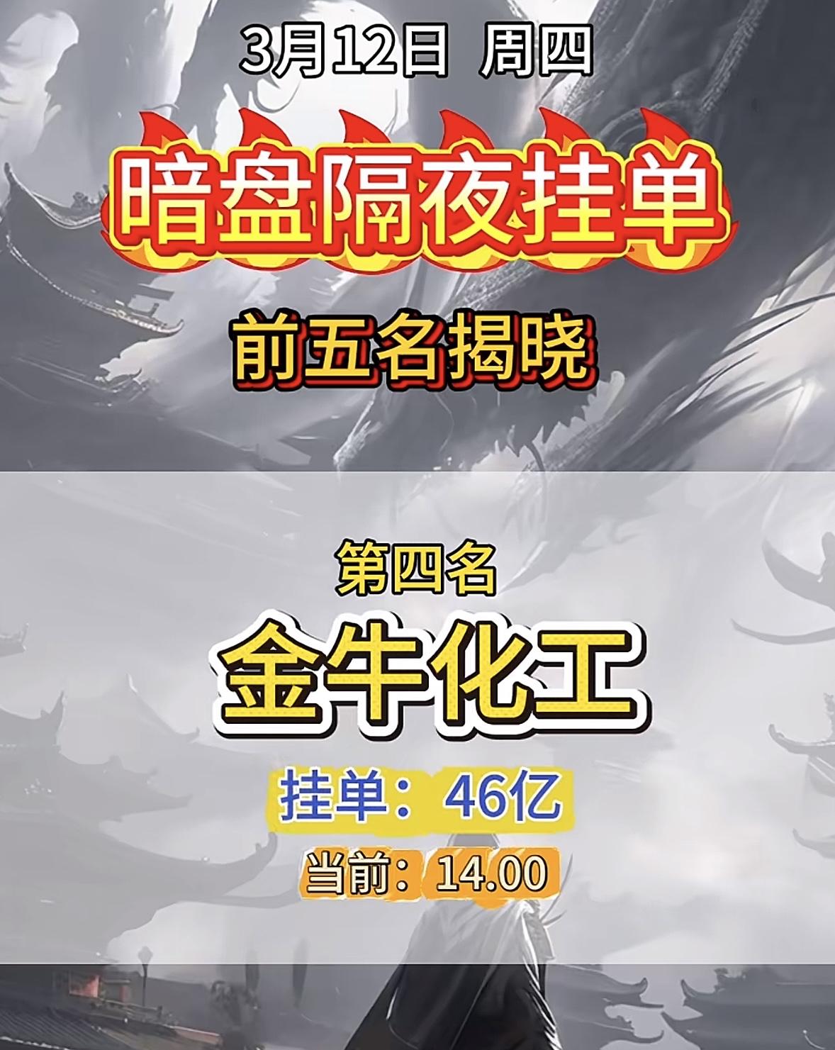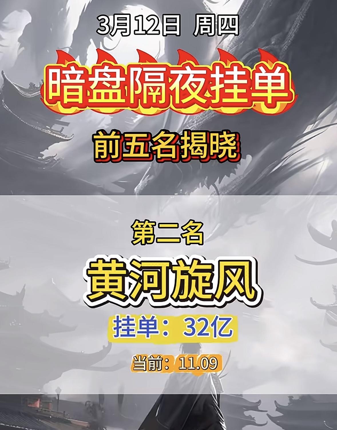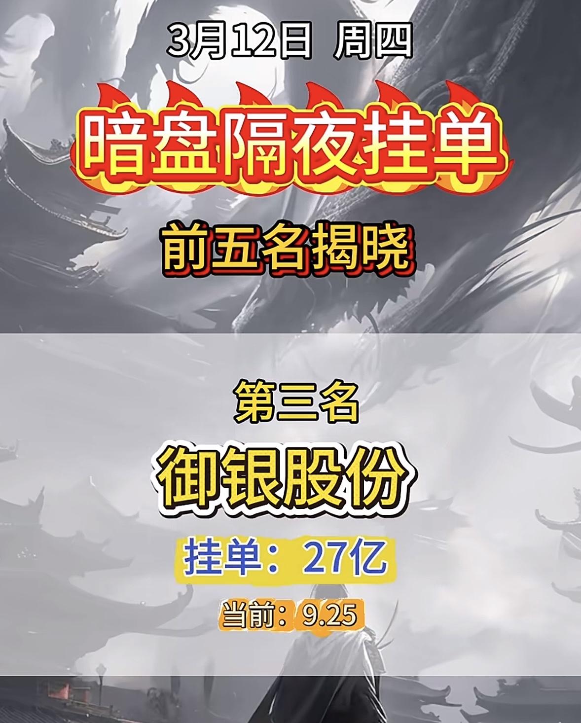3月12日暗盘隔夜挂单前5名个股揭晓