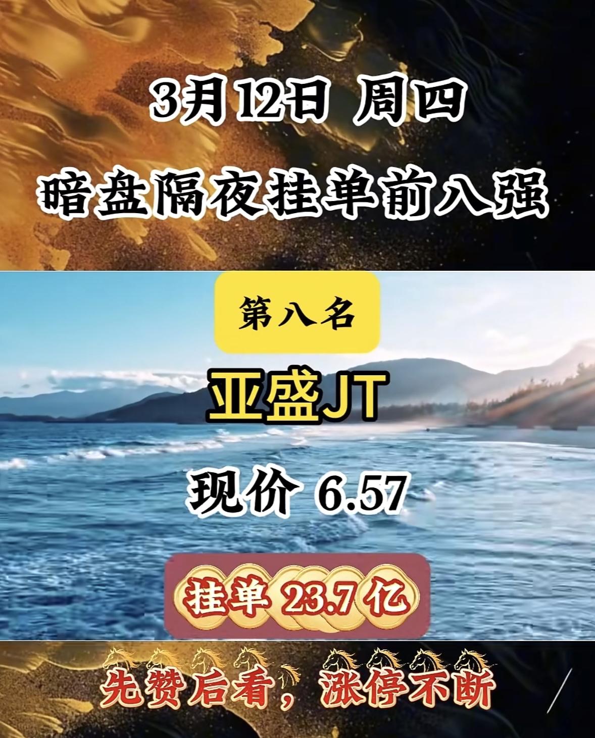 3月12日暗盘隔夜挂单前八强!