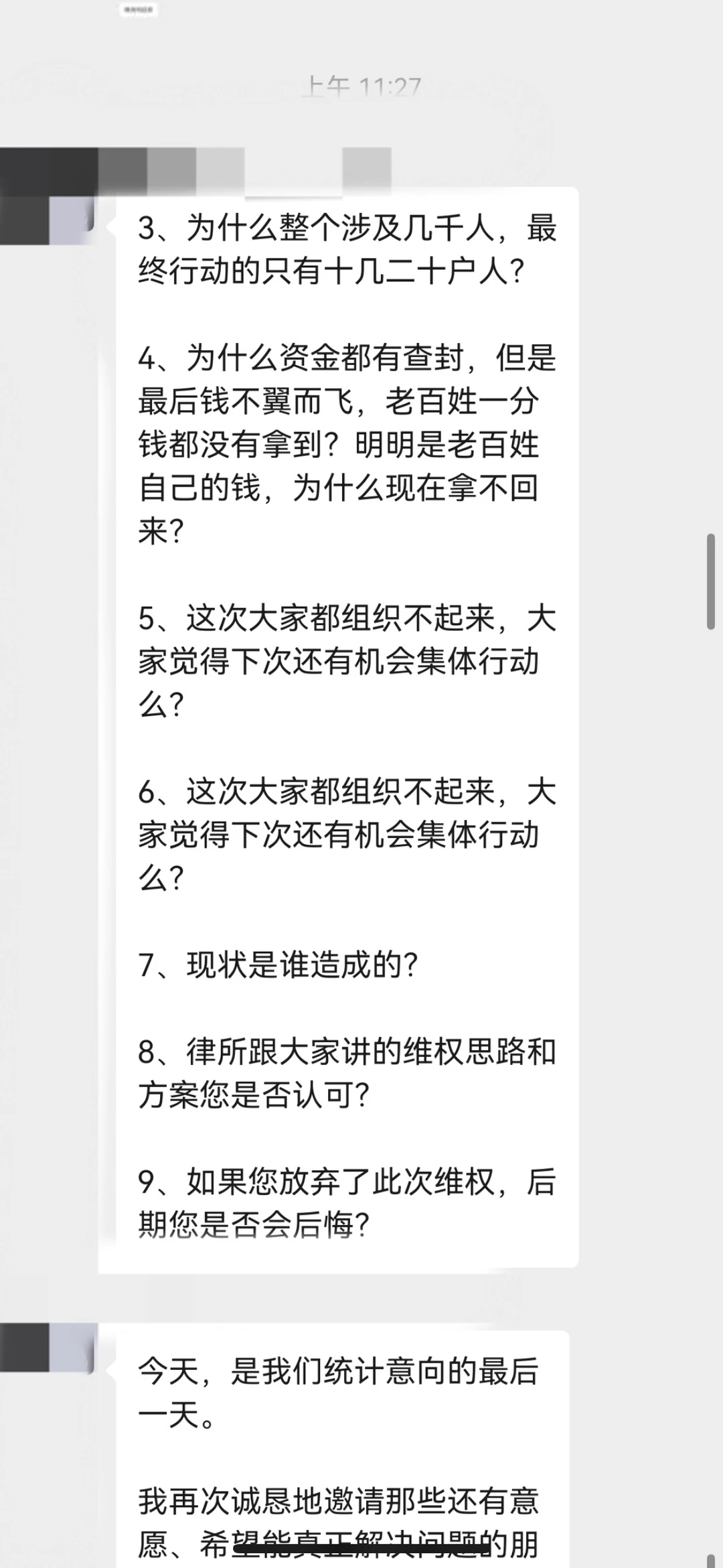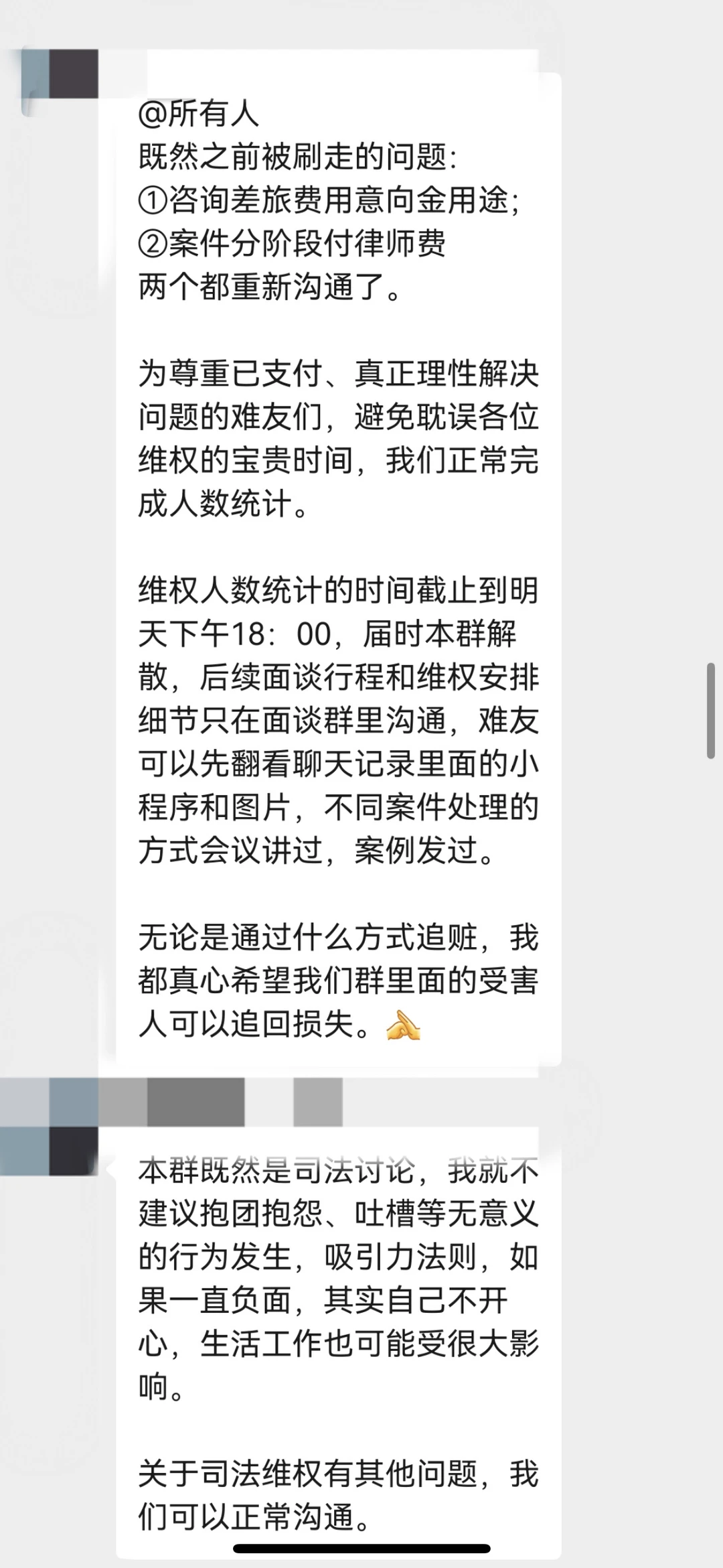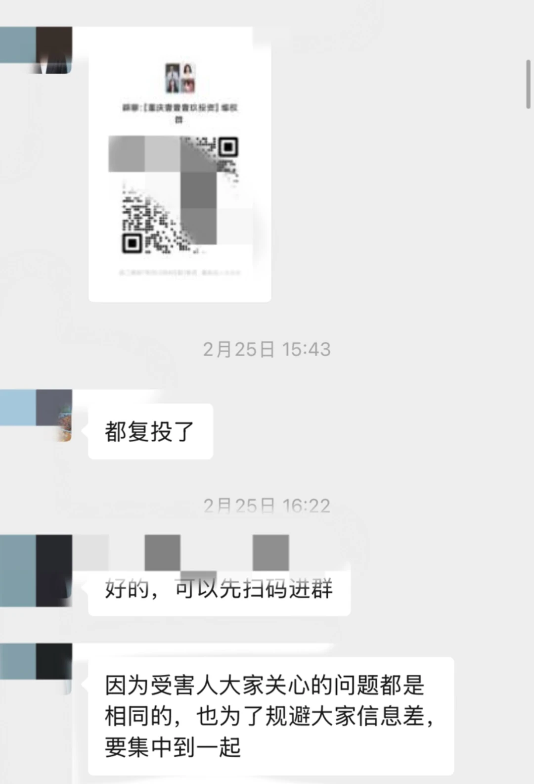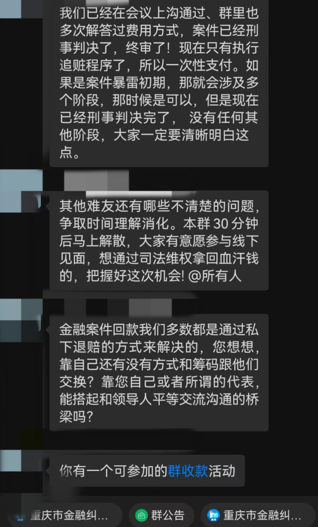 3.律所声称为了明确真实受害人,需要重新建群,受害人讲身份证、电话、被骗金额等隐私和证据发给律所员工;