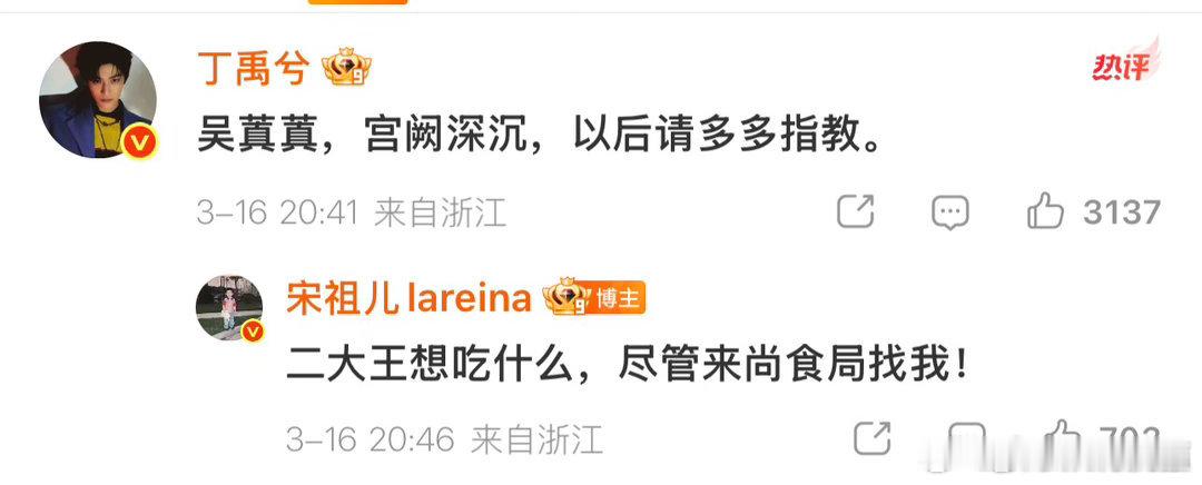 宋祖儿回复丁禹兮司宫令丁禹兮宋祖儿新剧开机,颜值搭档氛围感拉满,暖心互动到片场默契,坐等《司宫令》热播!