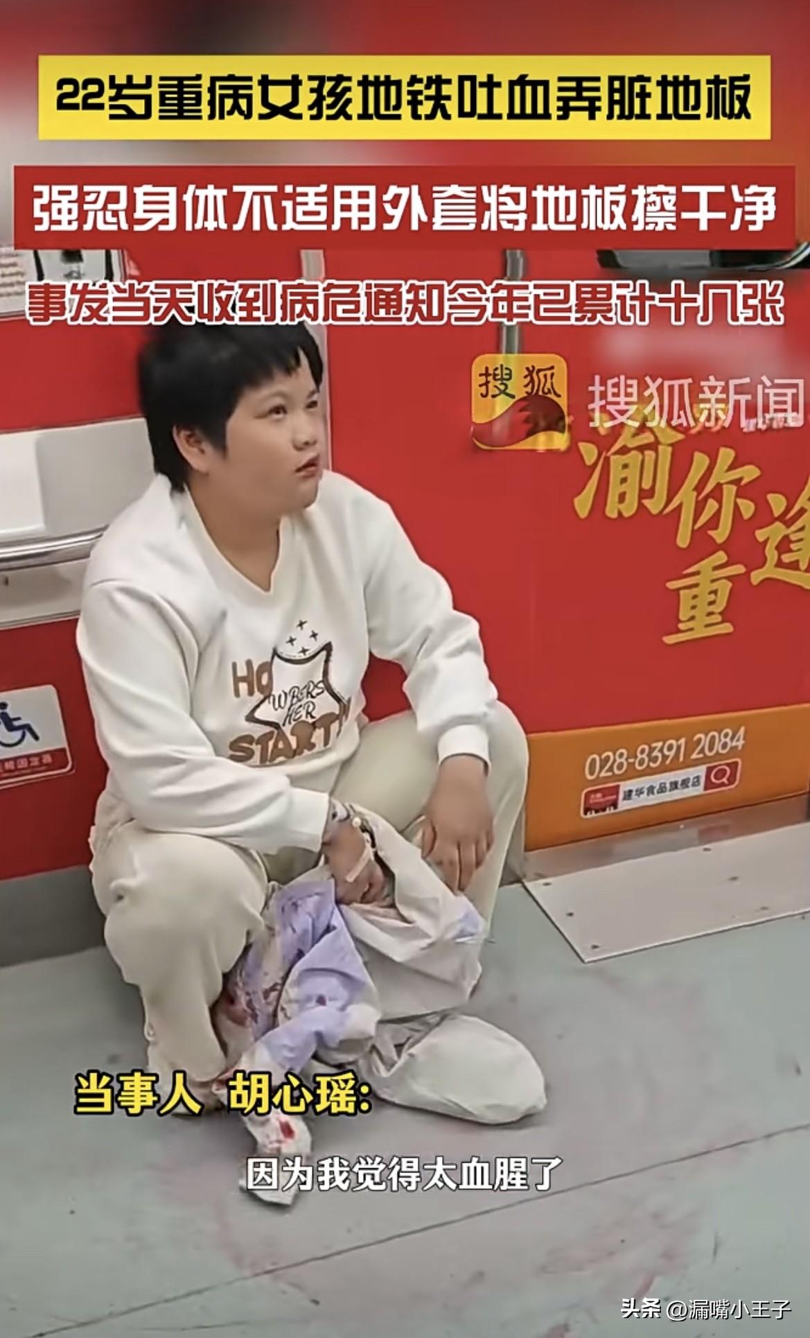 因重病两次拒绝男友求婚,地铁站吐血后仍强忍着身体不适,脱下自己最喜欢的外套将地板擦干净。她说“担心别人踩到,鞋子和地板会很脏”。
