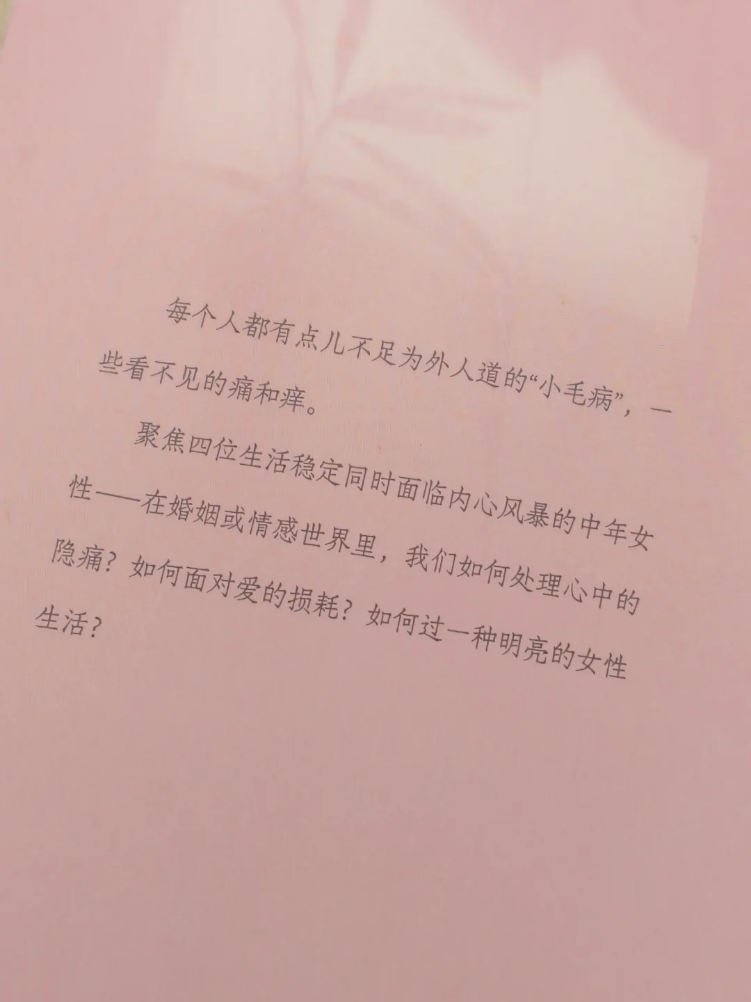 这本书写的不是大女主的逆袭,也不是撕心裂肺的狗血。它写了四个看似“稳赢”的中年女性:家庭圆满、工作体面。但她们身上都蛰伏着一种不足为外人道的“暗疾”——有人是婚姻里长期失语后爆发出的身体过敏,有人是在按部就班的生活中靠一封旧信确认自己还活着。