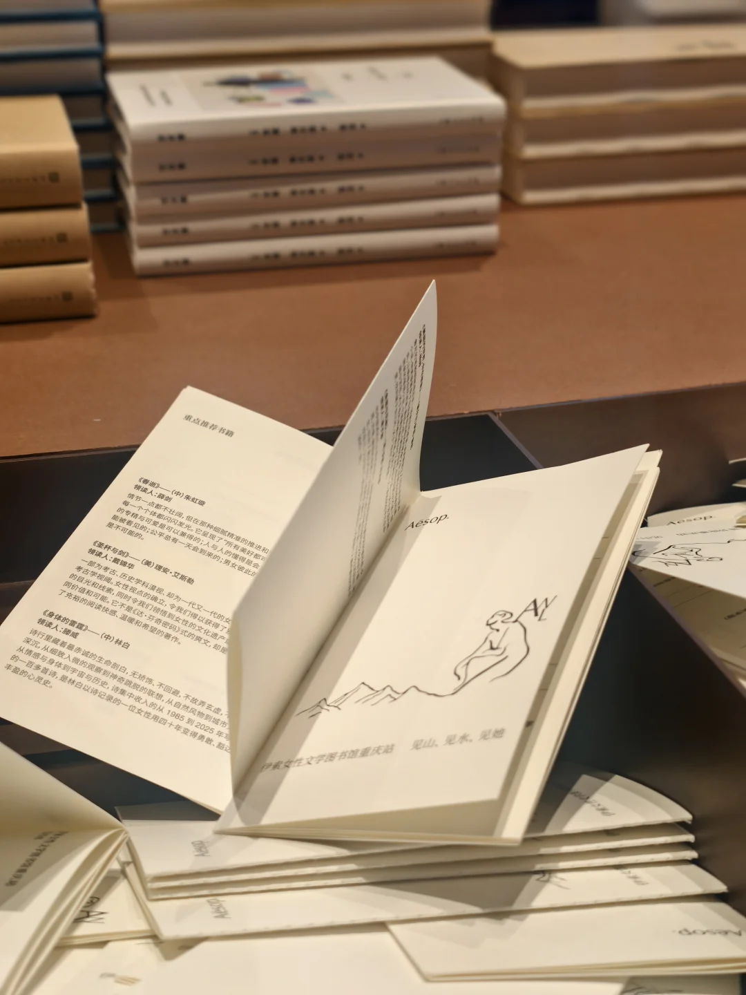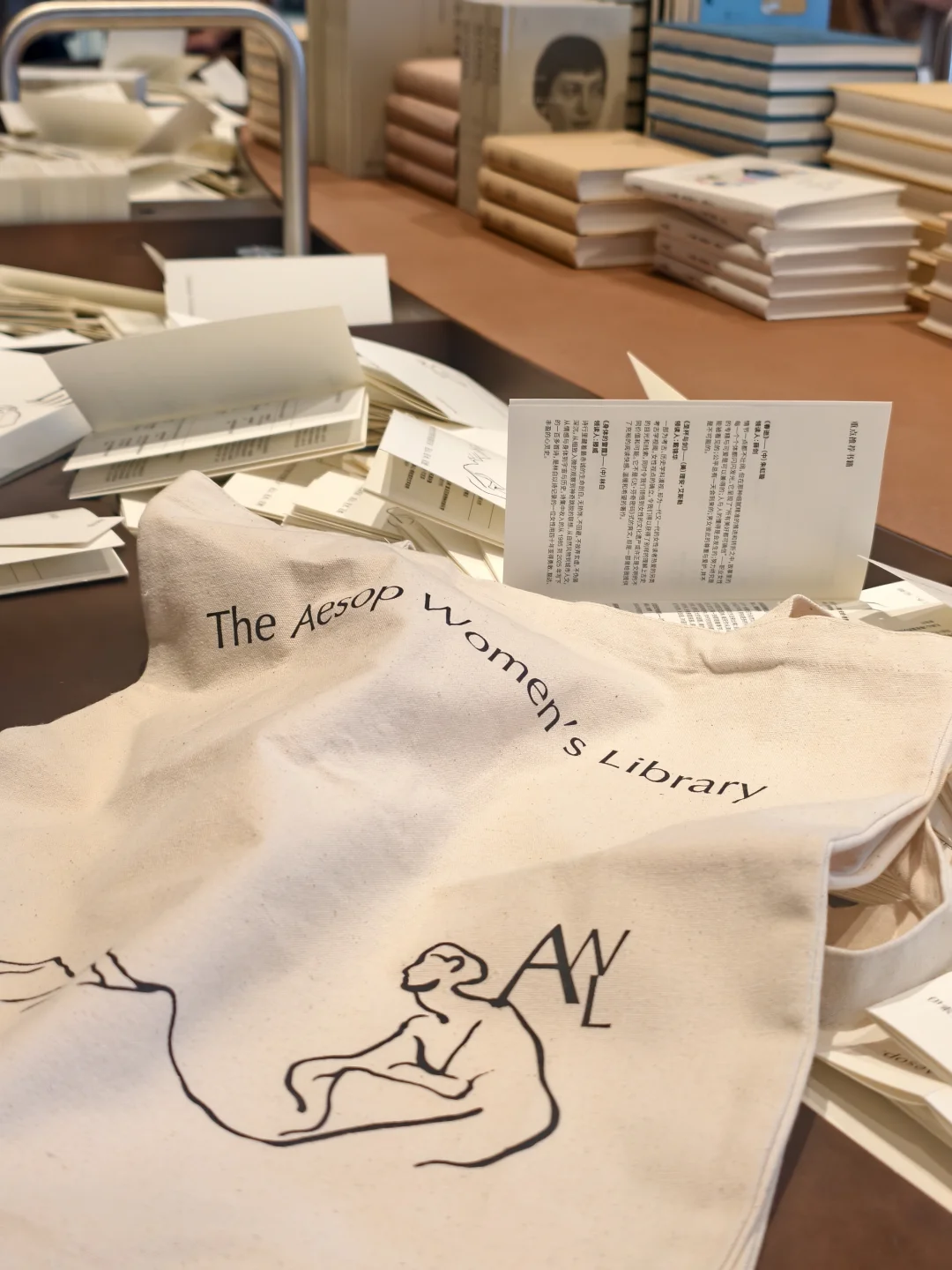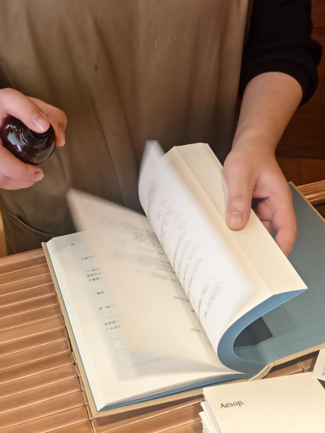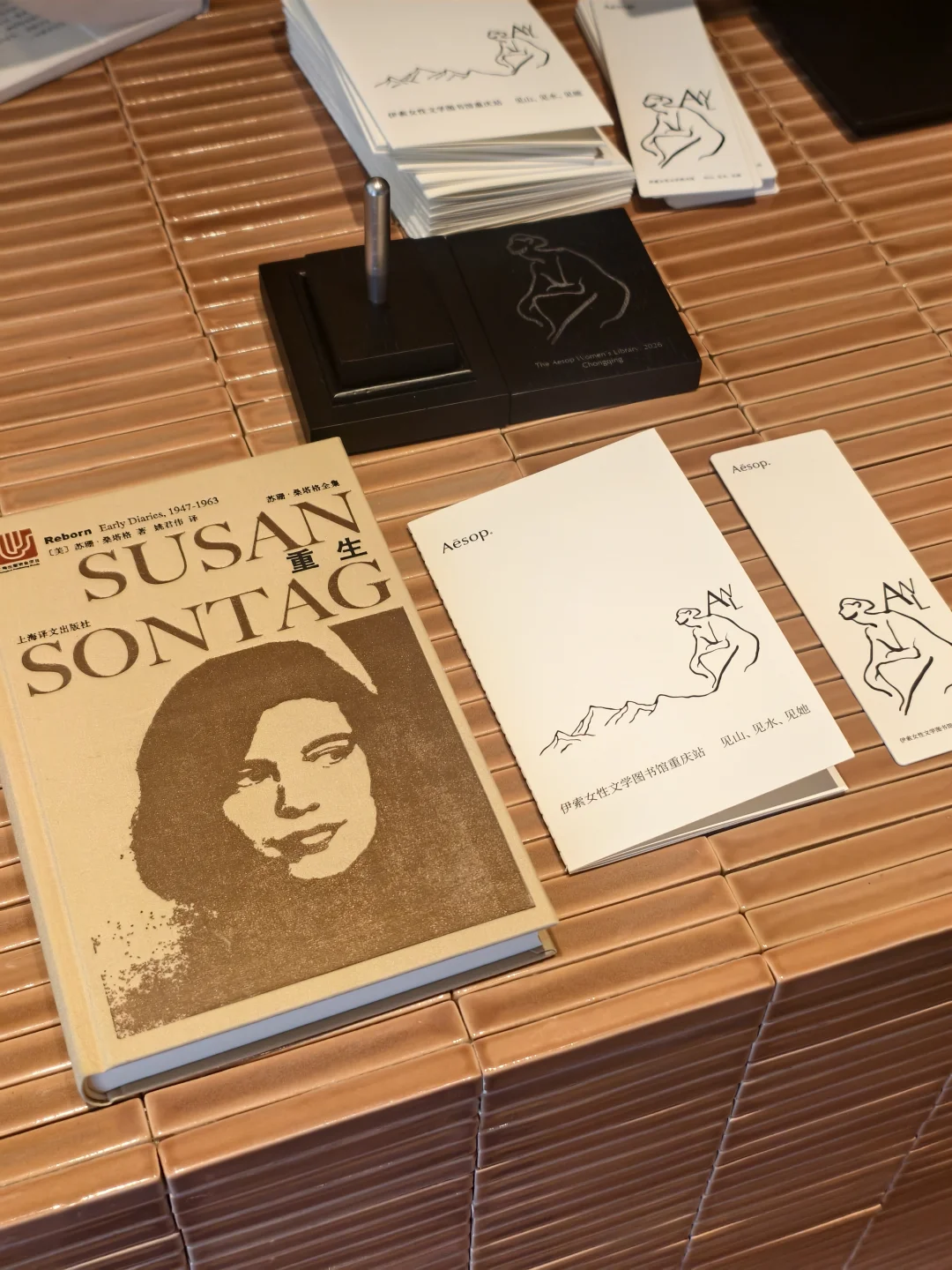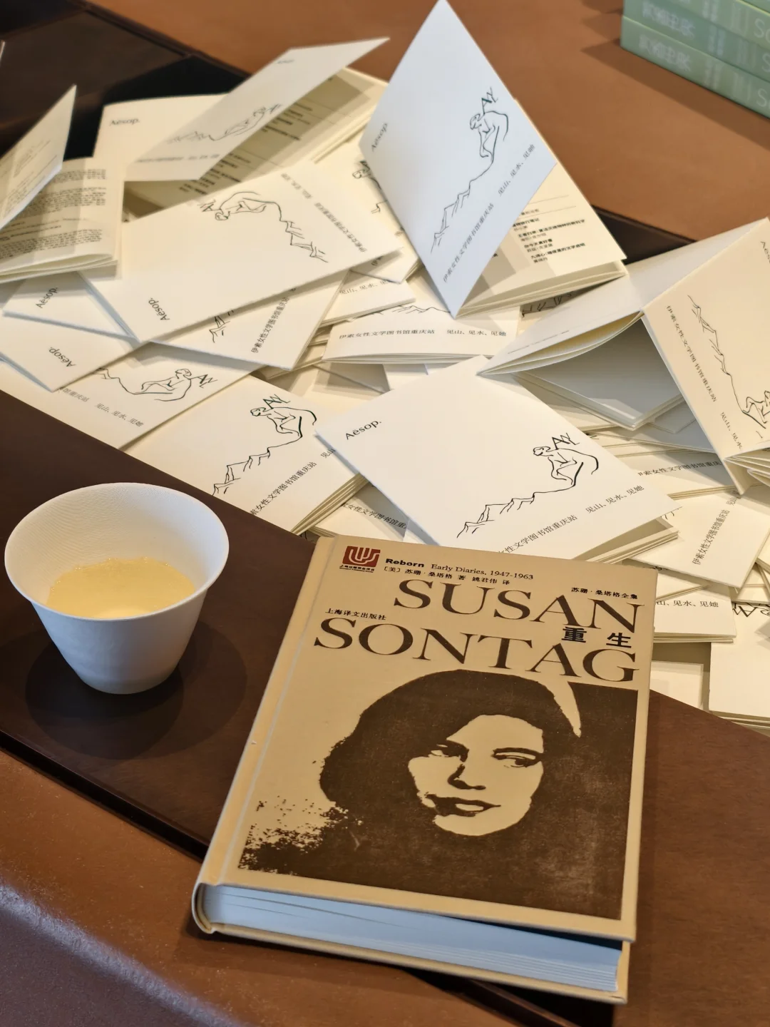 我也在书架上取下一本想了很久的苏珊·桑塔格《重生》,打包时,店员小姐姐在扉页上轻轻喷了一层伊索独有的香氛,细心装入布袋。这份被认真对待的仪式感,藏在每一处微小细节里。