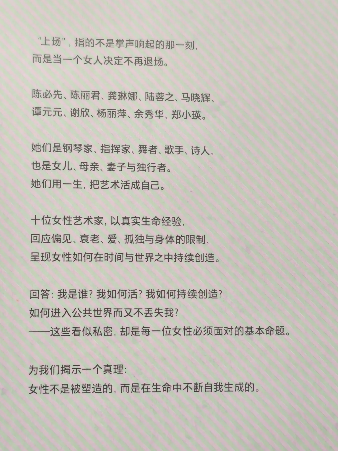 这本书没有高高在上的说教,只有真实生命经验的流淌。十位女性用自己的经历回答:如何在偏见、衰老、爱、孤独与身体的限制中,把艺术活成自己。