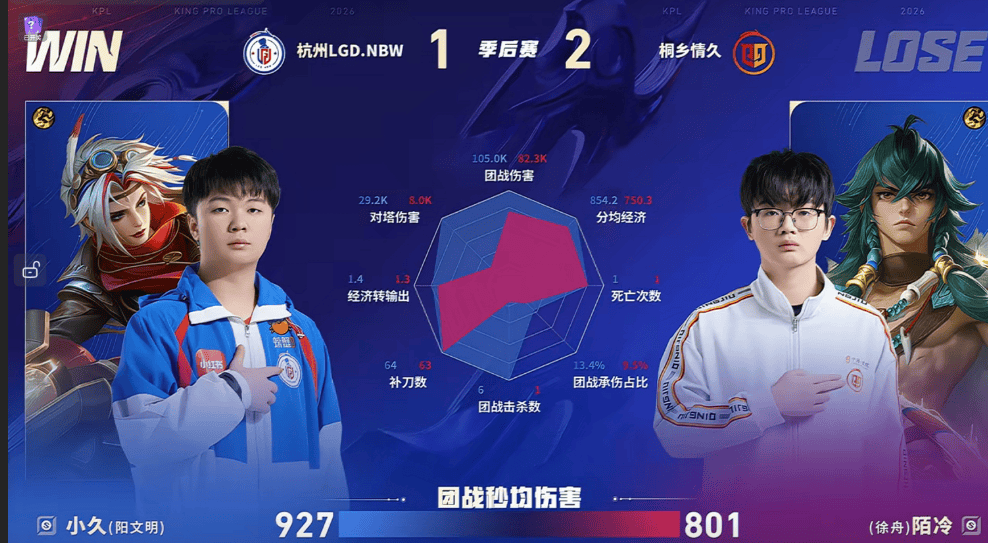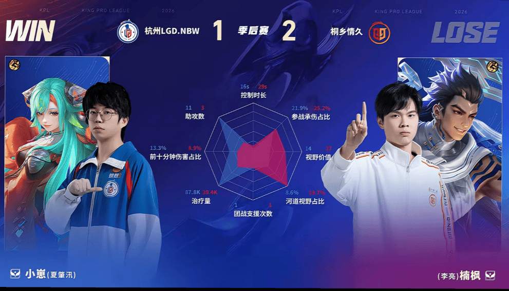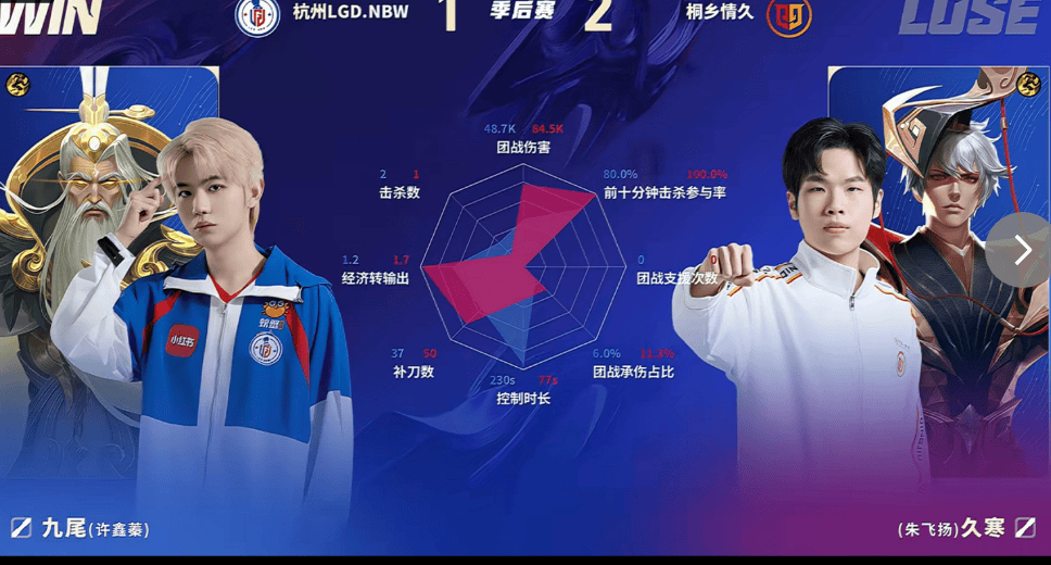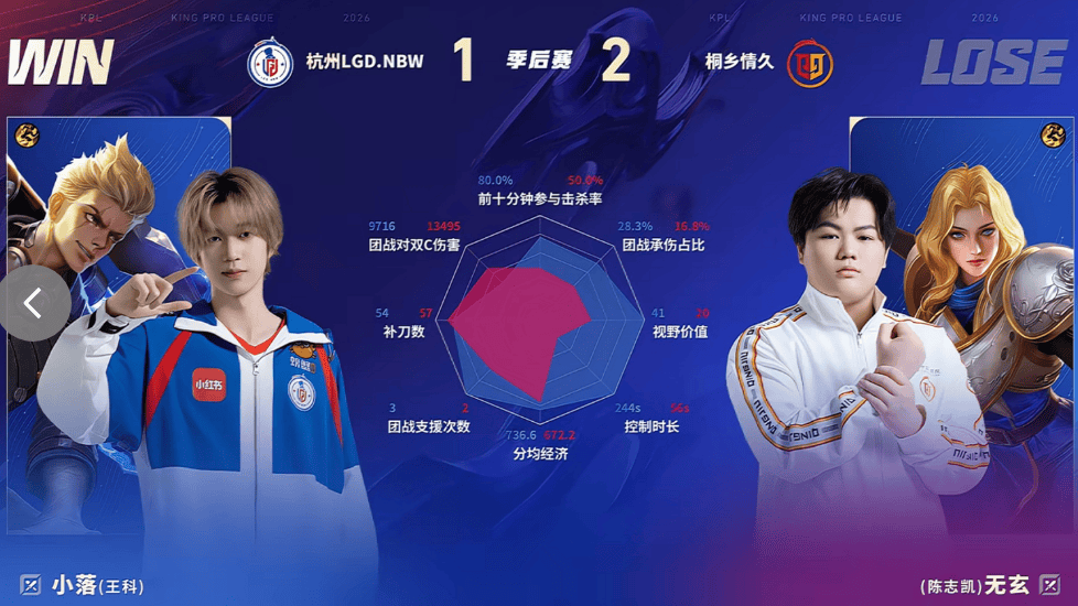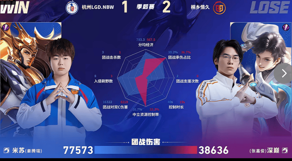 LGD/情久第三局数据对比:小久戈娅八芒星图,五项顶满