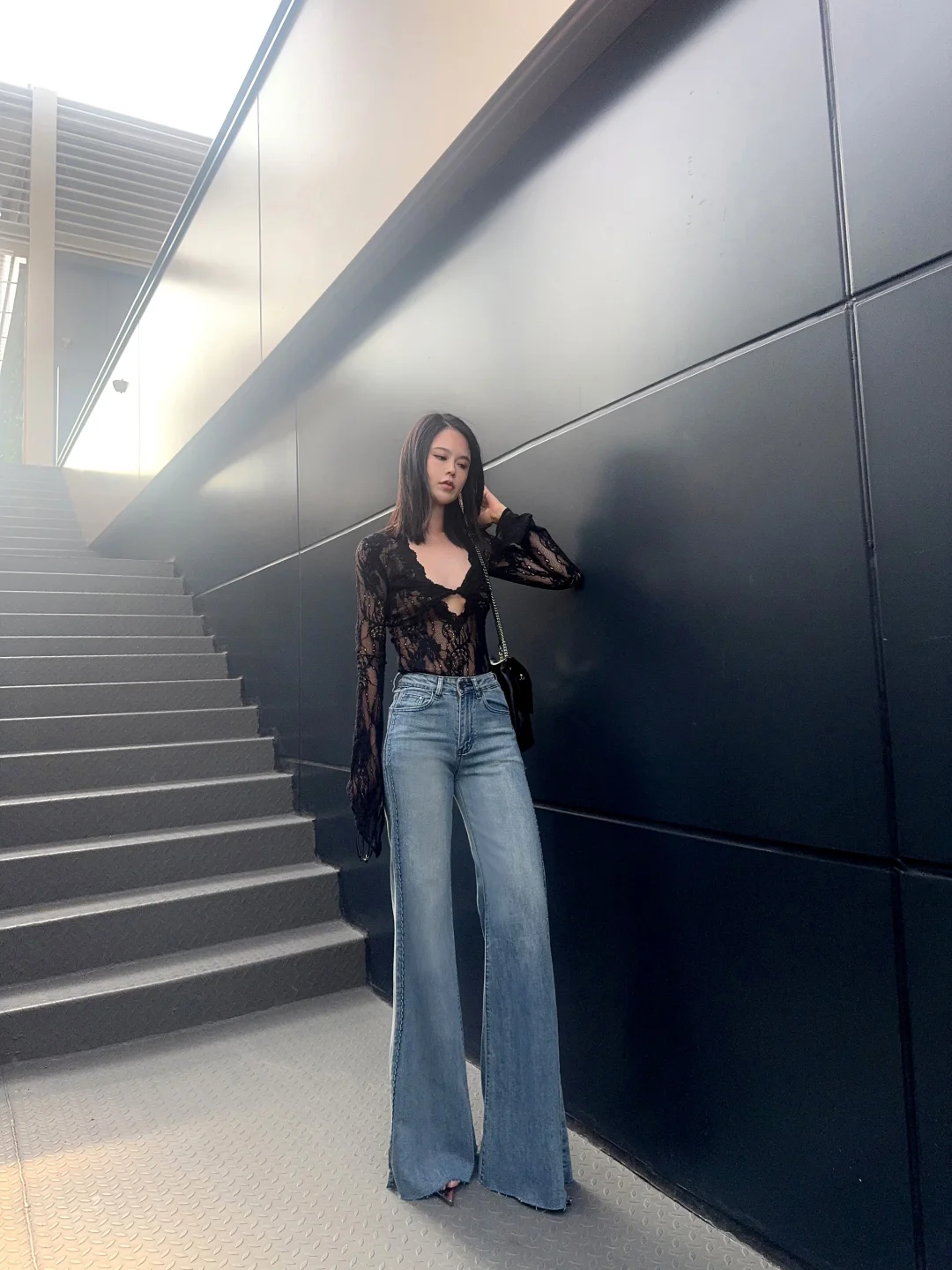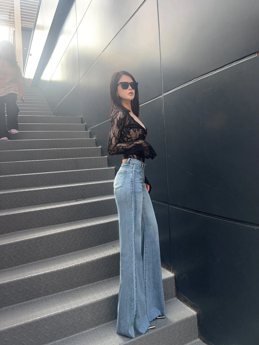 每日穿搭 牛仔阔腿裤 牛仔裤女 逛街穿搭 ootd