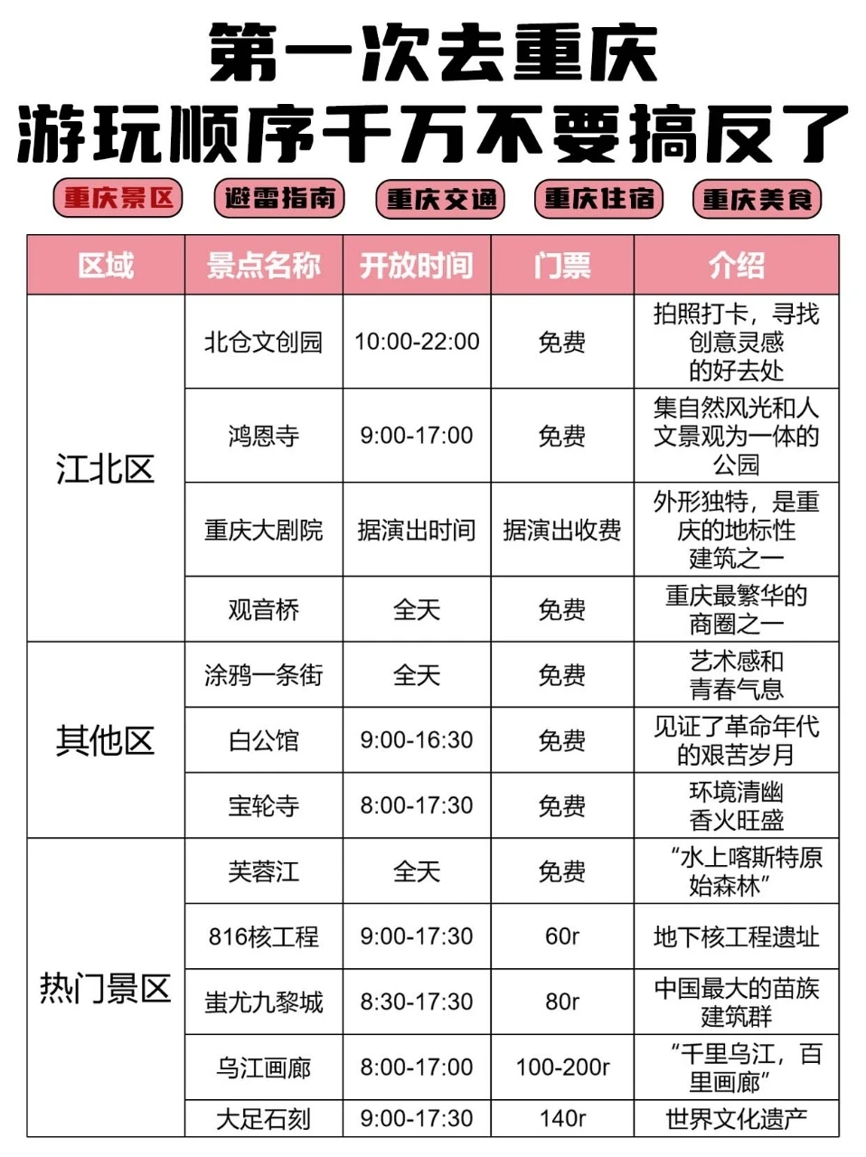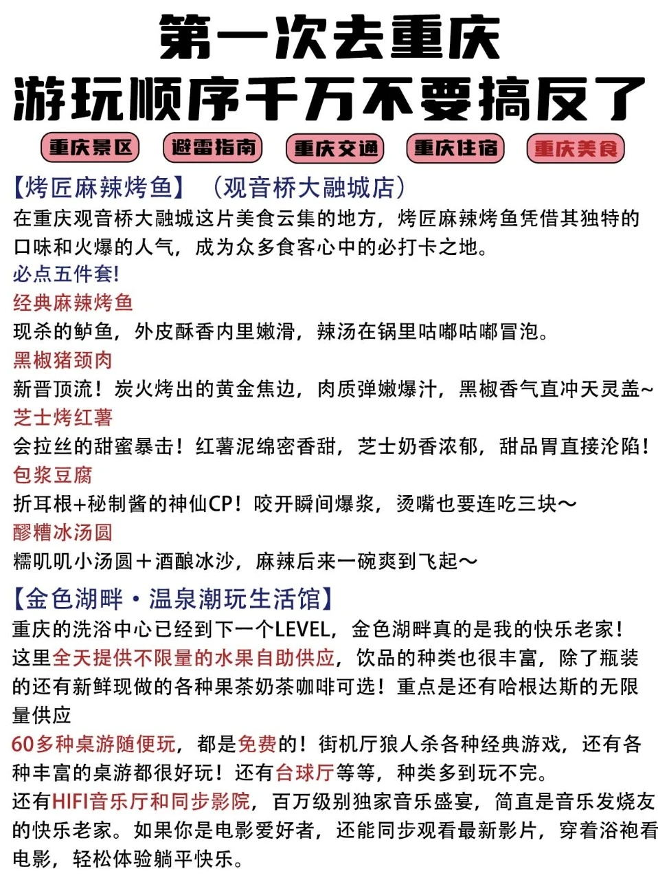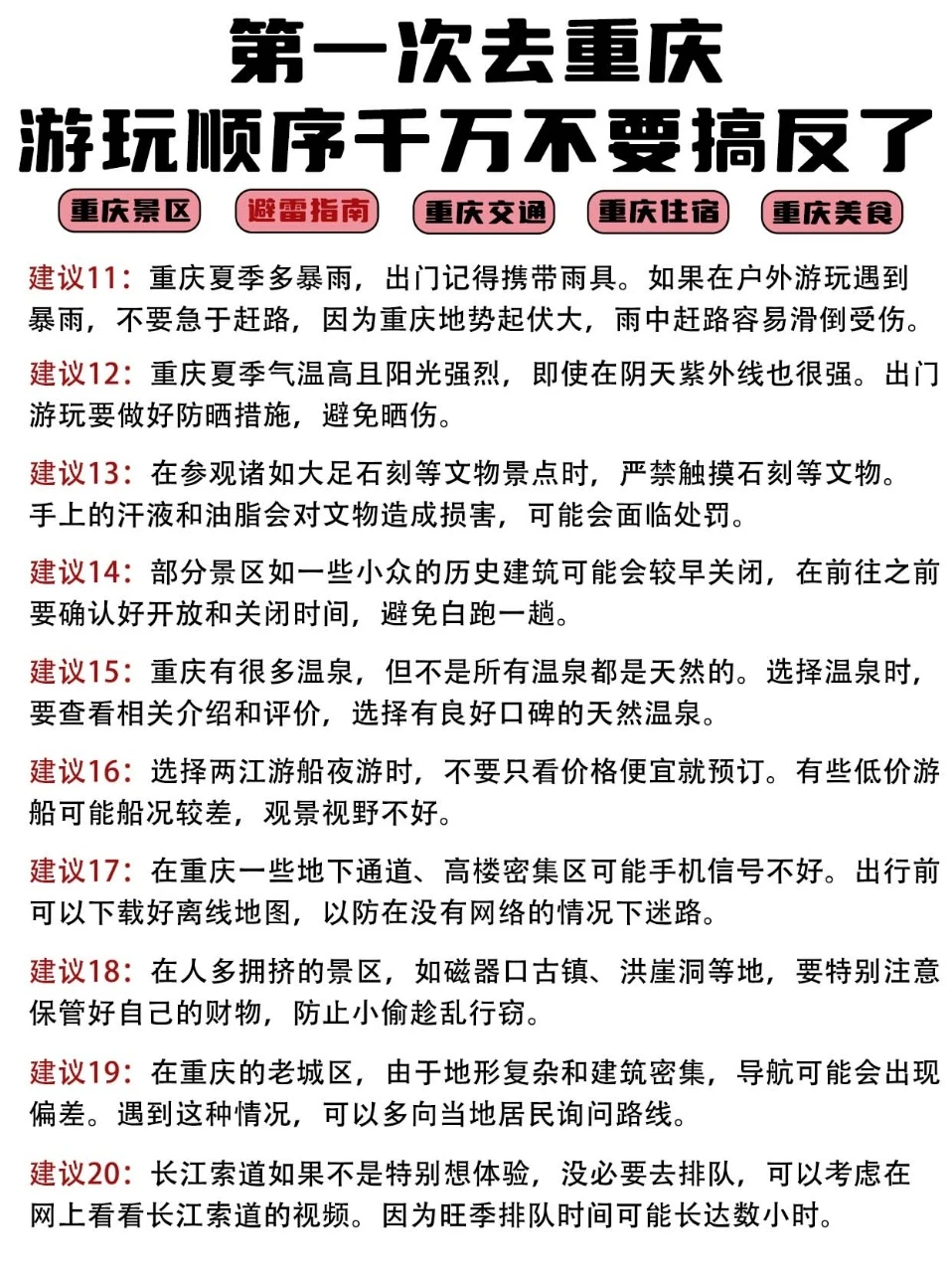 ▫李子坝除了看轻轨穿楼,建议去「三层马路」步道,能拍列车从楼里冲出来的动态感 ▫坐长江索道选「南站」起点,排队人少!傍晚坐能同时看到日落和两岸灯光渐亮
