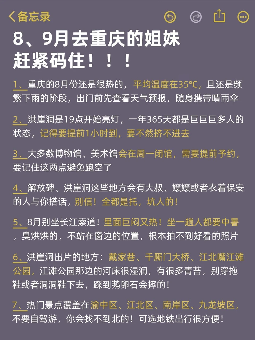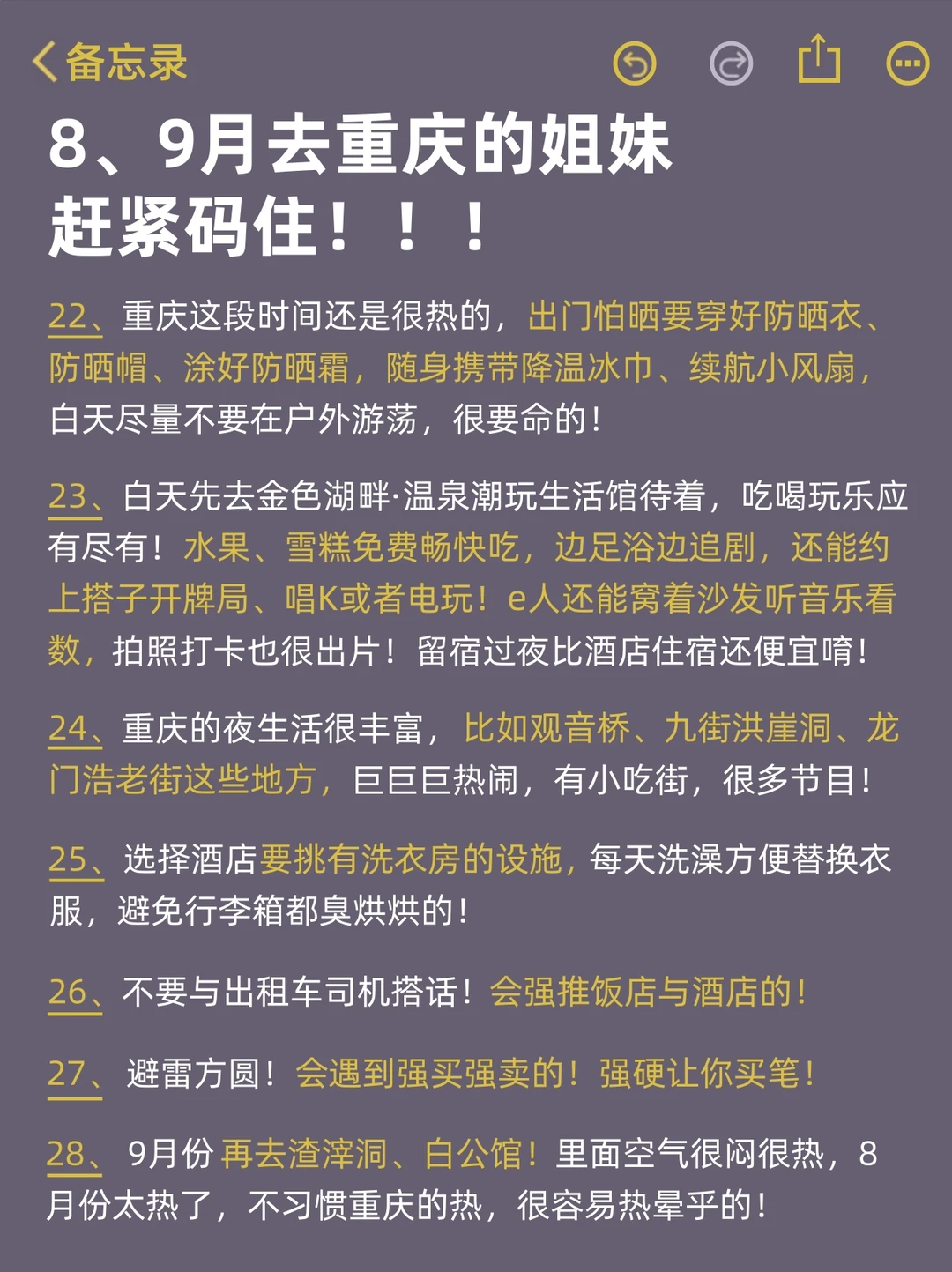 8-9月份要来重庆的uu们!8月份的重庆还是巨热的🥵,要来玩就要做好心理准备,我根据自身亲身体验总结了这份攻略,需要的姐妹先🐴住吧!