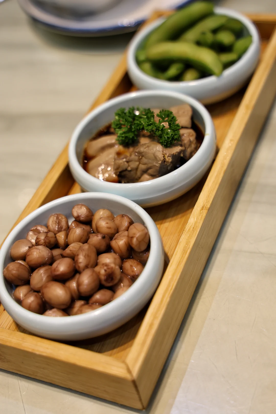 🥜三味蝶🥜:一荤两素的冷碟,卤花生、卤肝和毛豆都很入味,开胃前菜很合适。