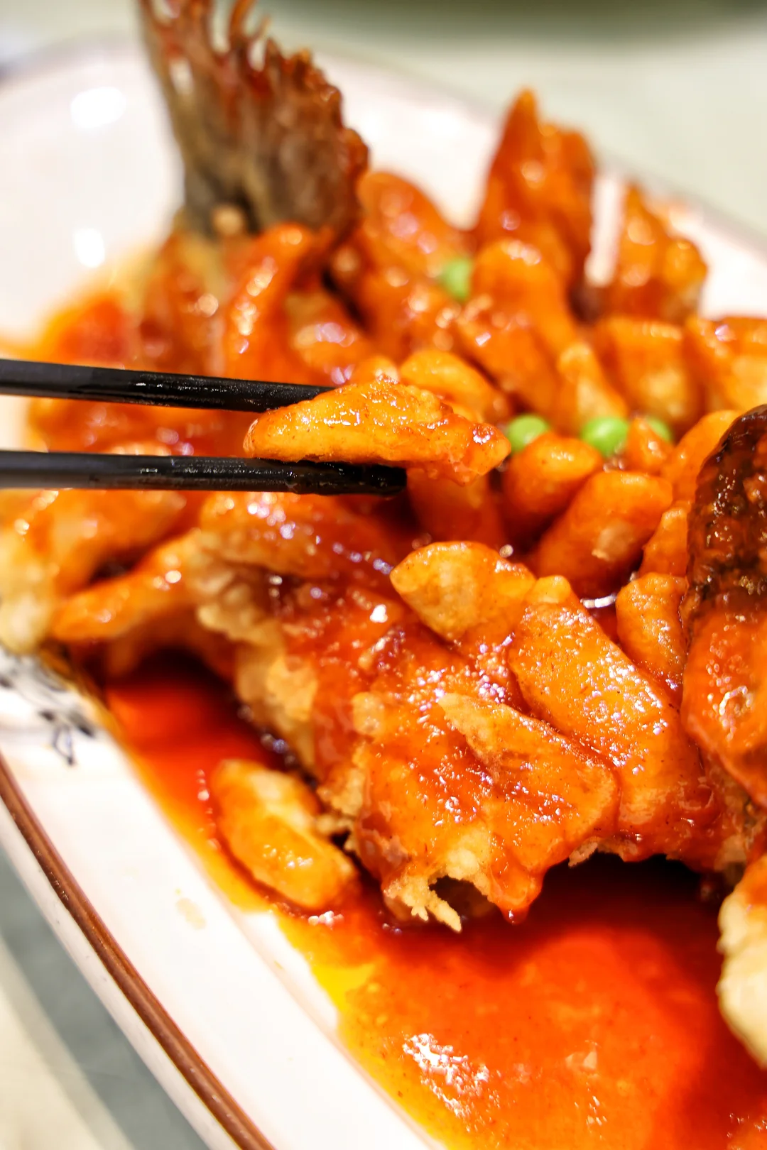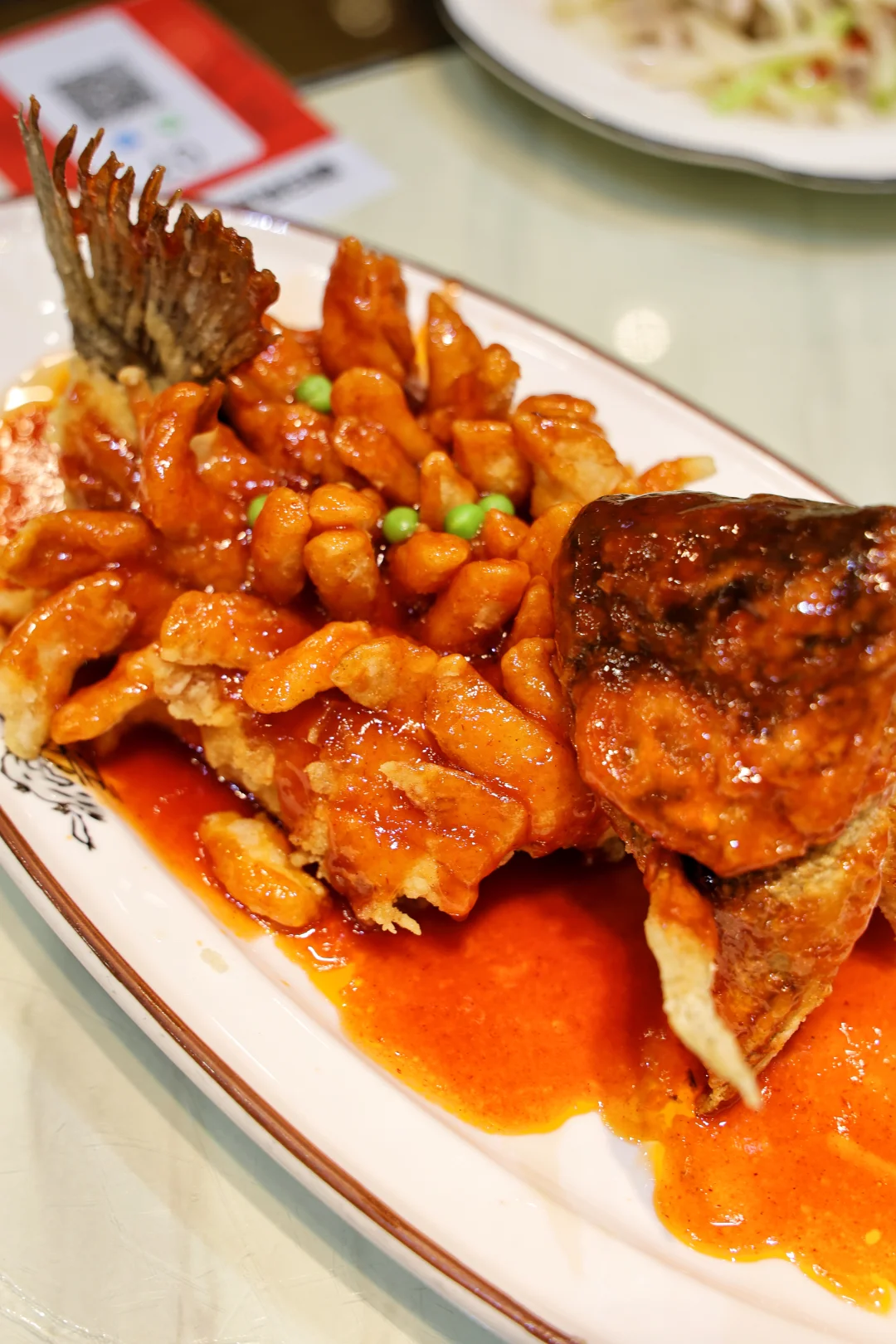 🐟松鼠鱼🐟:用的是鲈鱼,处理得超干净,一点骨头都没有!外酥里嫩,酸甜酱汁很开胃,美中不足是少了一丢丢鱼本身的鲜味,但口感和卖相都很在线~