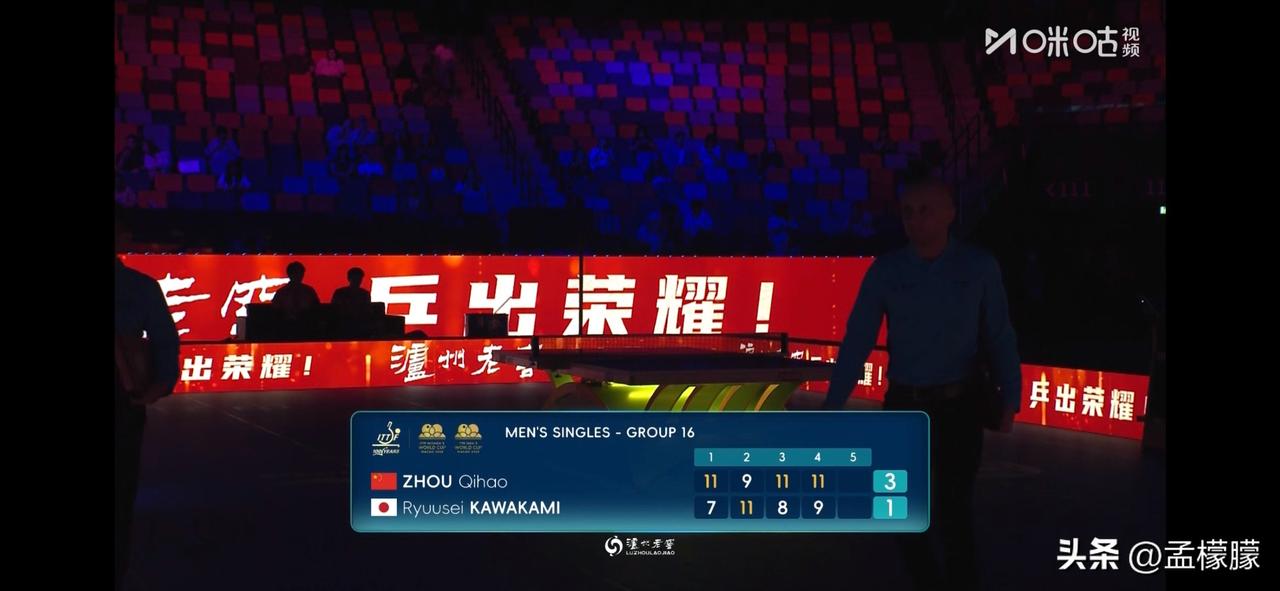 周启豪(CHN)3-1川上流星(JPN)【11-7,9-11,11-8,11-9】