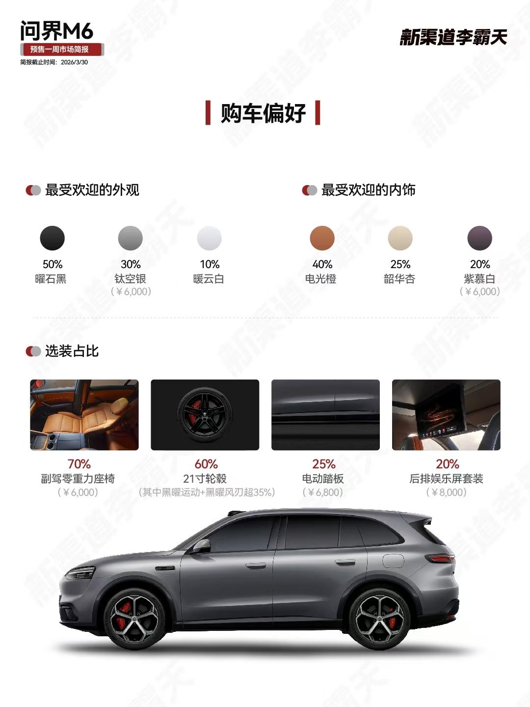 近日,有博主调研问界M6预售一周市场表现。整体看,问界M6平均单店小订60-80