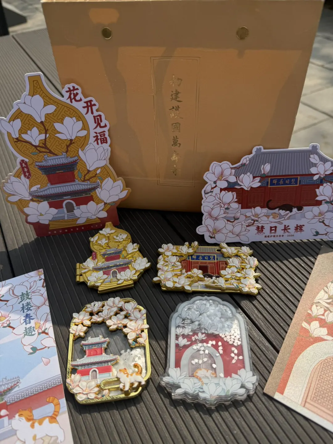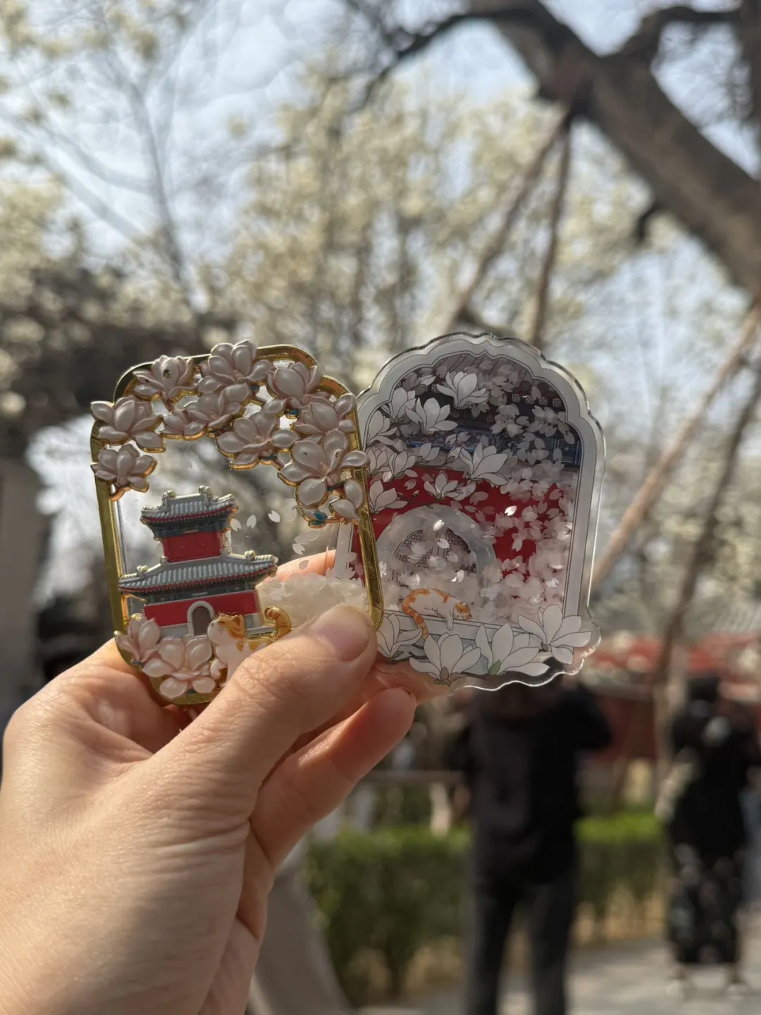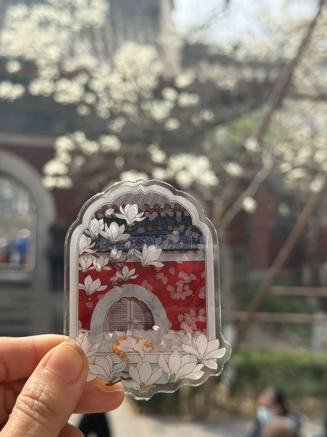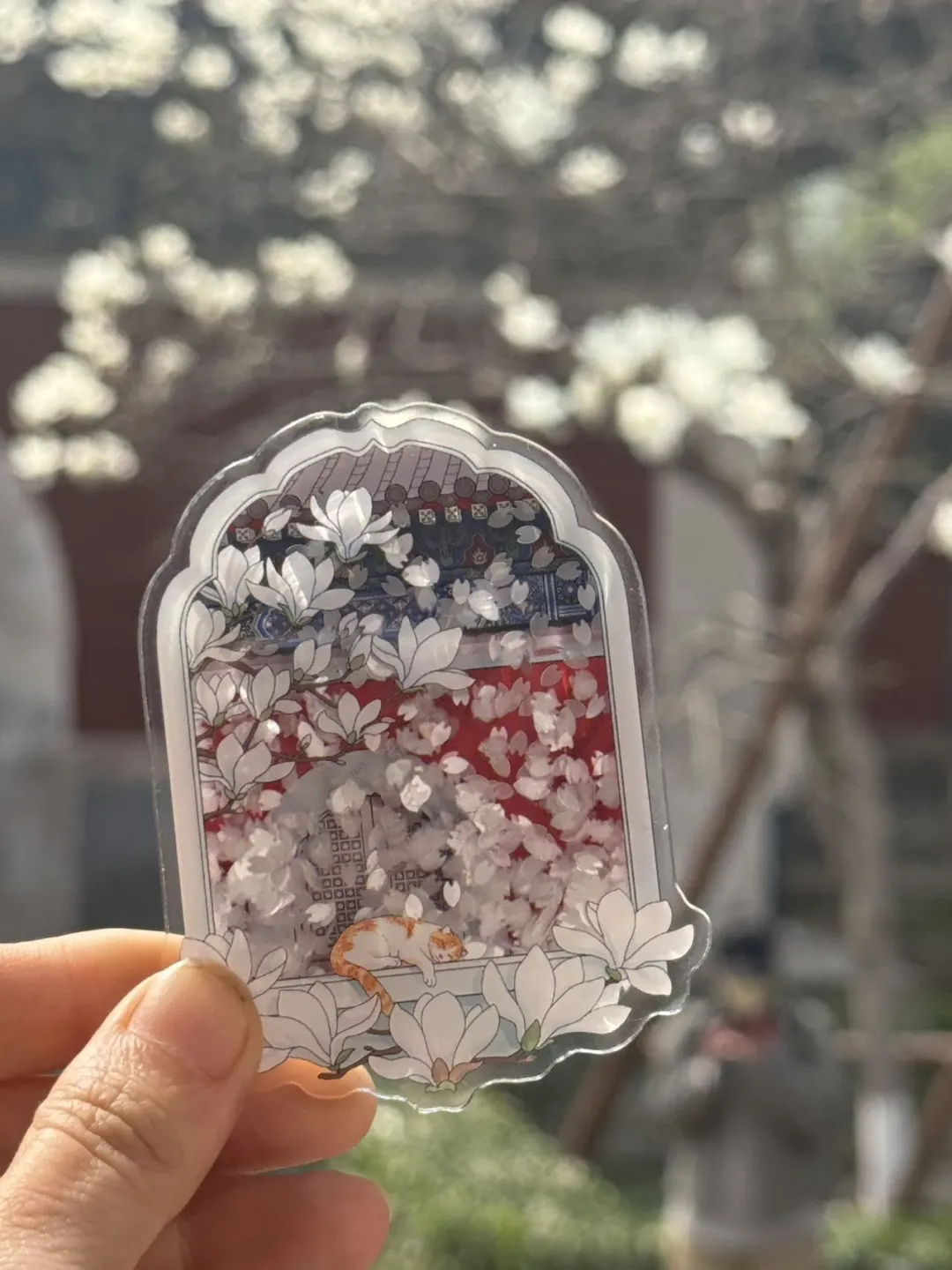 文创店玉兰系列的,有的都卖断货了,一定要趁早去,冰箱贴每款都很有心意,设计很精巧,美丽的玉兰花还有可爱的猫猫加持,真的绝了!!