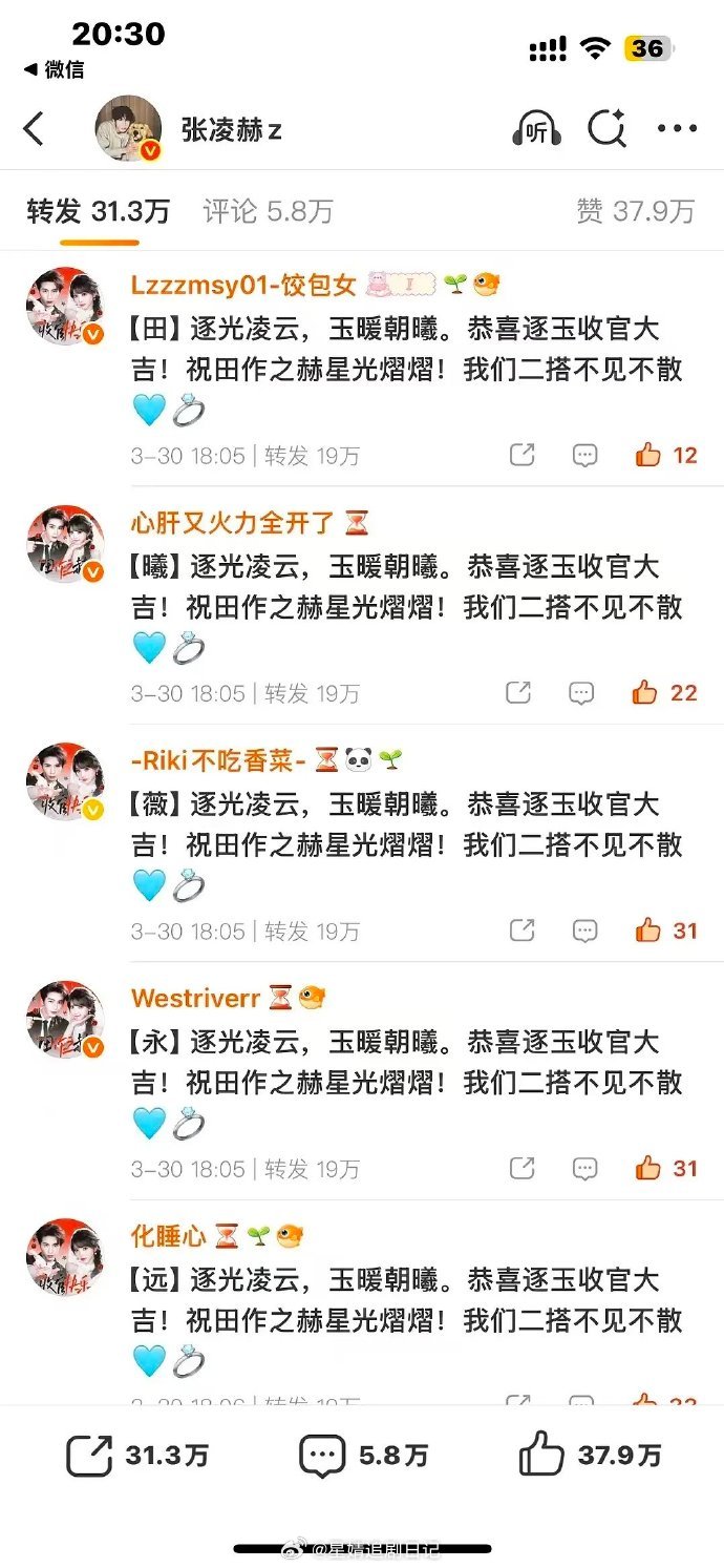 田作之赫没等到断头饭等来了合作同事 张凌赫转发区被田作之赫cpf占领了