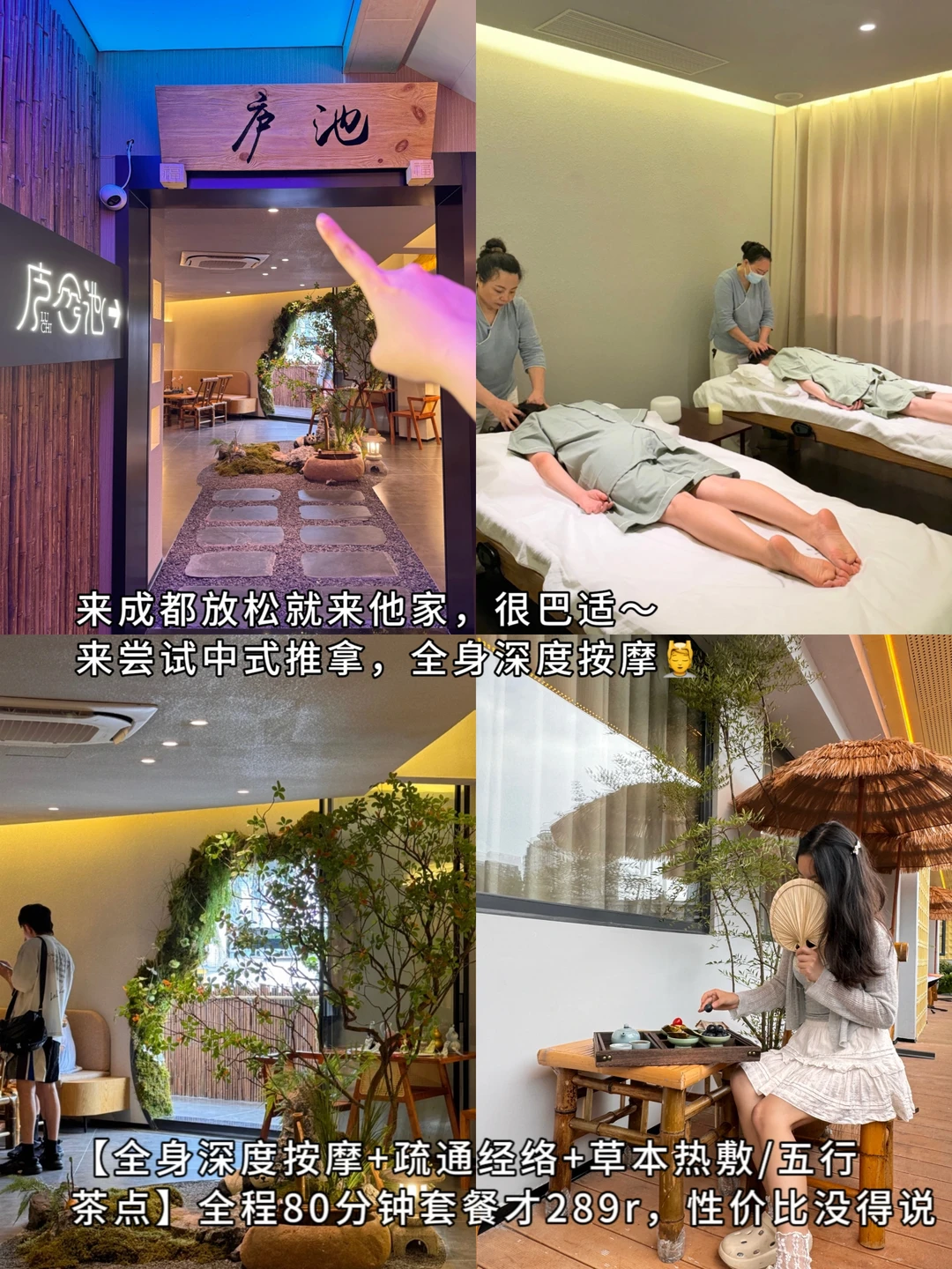 旅游一天,推荐去💆【庐池·东方推拿·五行足道·疗愈SPA】体验中式推拿,全身深度按摩,还可以尝试五行茶点,很巴适~
