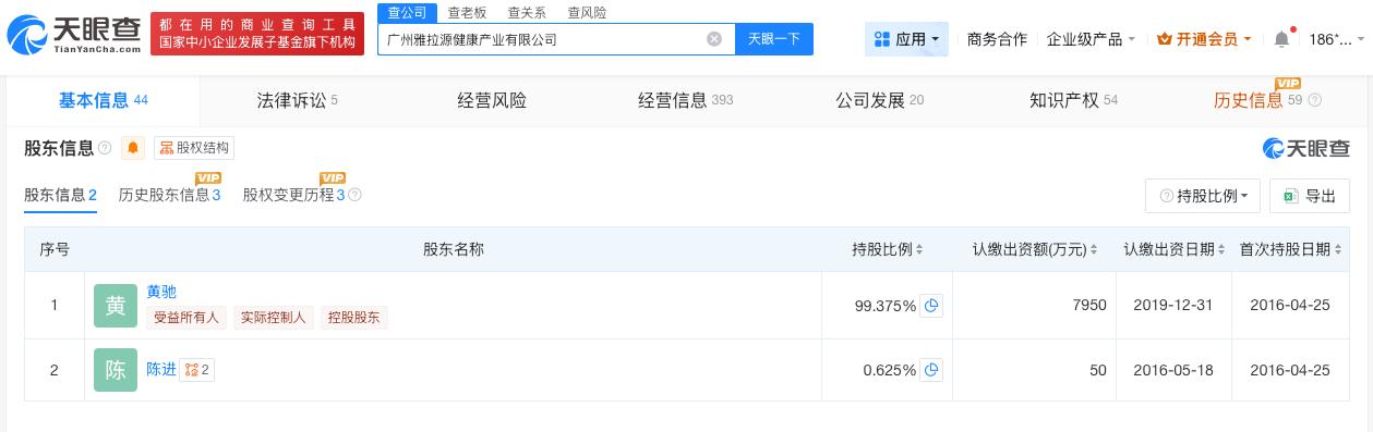 蒙牛曾对优思益商标提出异议 揭秘优思益品牌授权运营方优思益声明 据媒体报道,伪进口保健品优思益乱象被曝光。随后,优思益发布声明回应。 天眼查知识产权信息显示,2022年10月,内蒙古蒙牛乳业(集团)股份有限公司曾对优思益中国市场运营方广州雅拉源健康产业有限公司申请的第54585909号“优思益”商标提出异议,审查结果为该商标依据《商标法》不予注册。 广州雅拉源健康产业有限公司成立于2016年4月,法定代表人为黄驰,注册资本8000万人民币,经营范围包括日用百货销售、日用品销售、卫生用品和一次性使用医疗用品销售等,由黄驰、陈进共同持股。 天眼查信息: