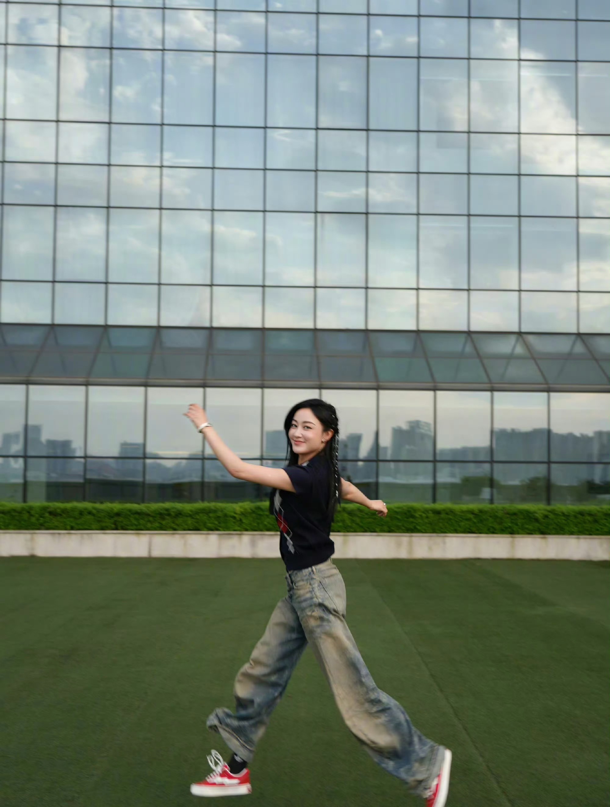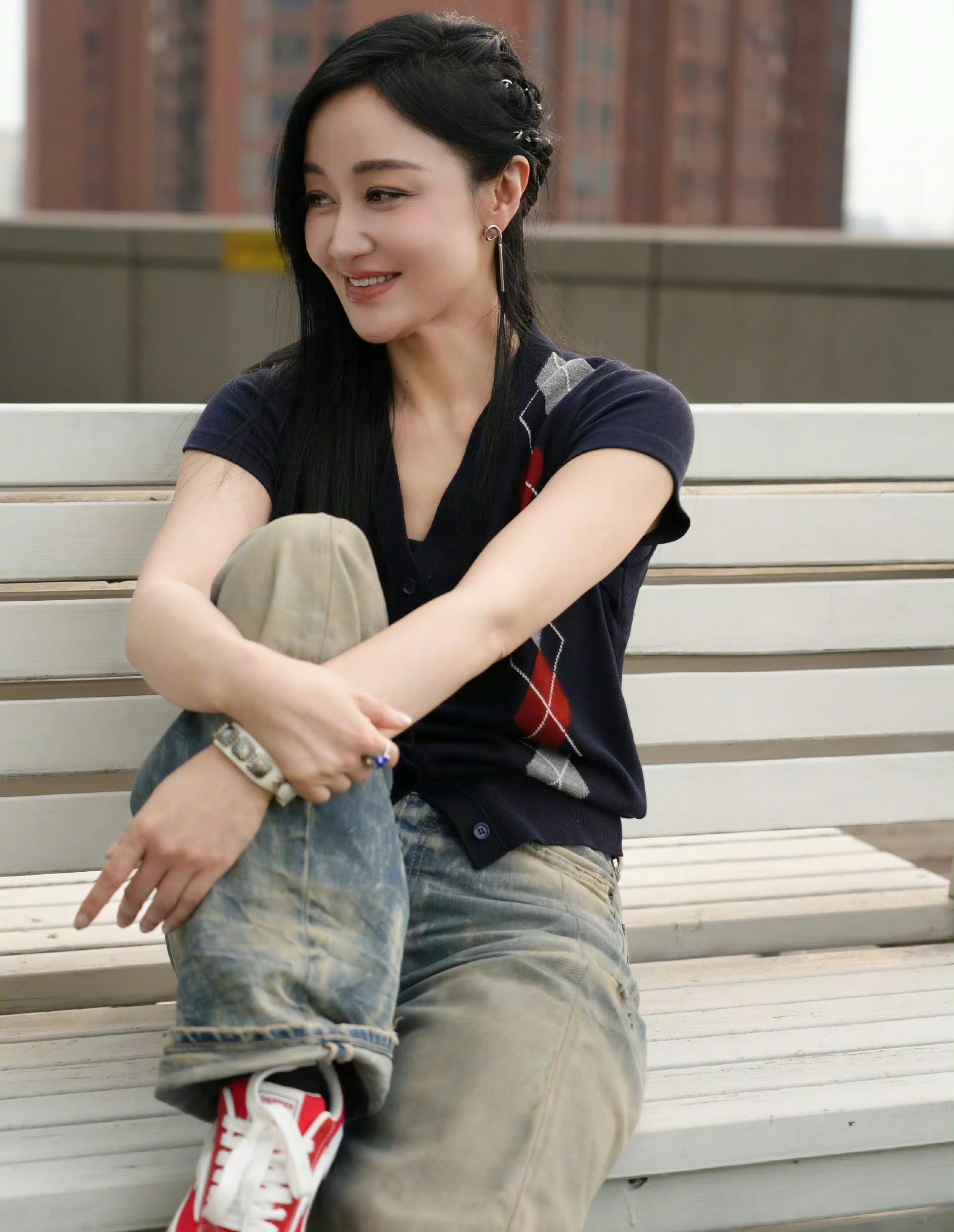 赵子琪乘风妆造完全青春女大来的赵子琪乘风妆造🈶针织衫半袖+牛仔裤真的扑面而来的