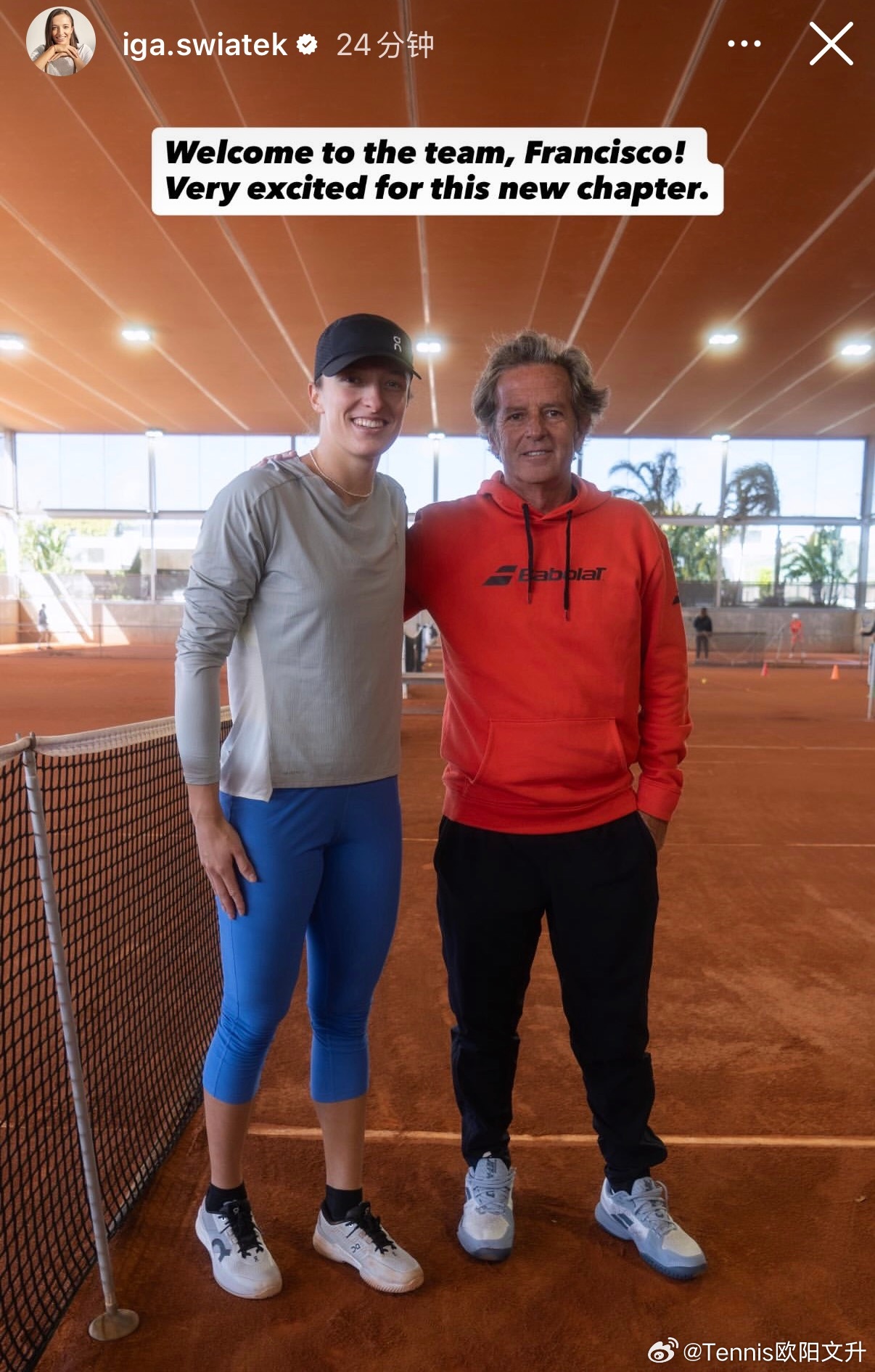前阵子和费赛特结束合作🔚🇵🇱斯瓦泰克在今天宣布新教练弗朗西斯科·罗伊格
