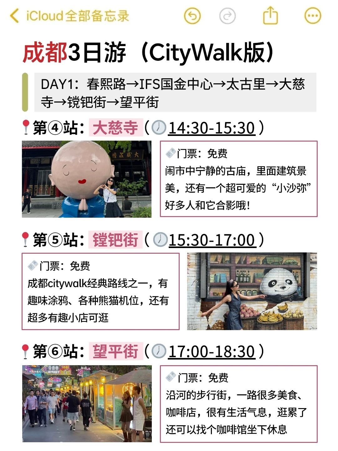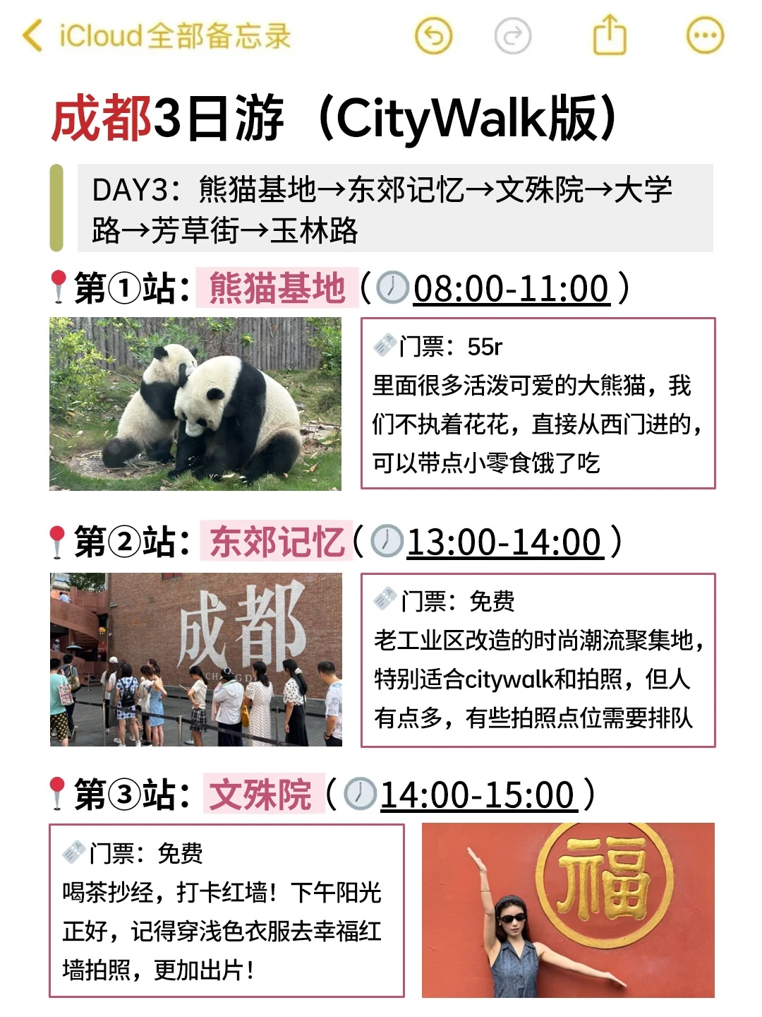 ✅DA3:熊猫基地→东郊记忆→文殊院→大学路→芳草街→玉林路