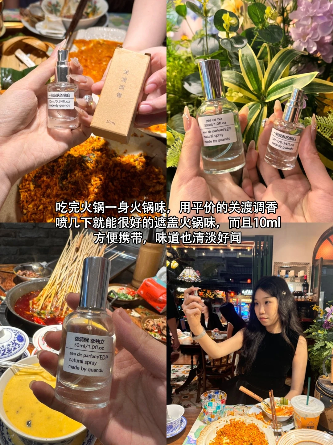 吃完火锅一身火锅味,用平价的关渡调香喷几下就能很好的遮盖,而且10ml方便携带,味道也清淡好闻更多旅游攻略可看这里