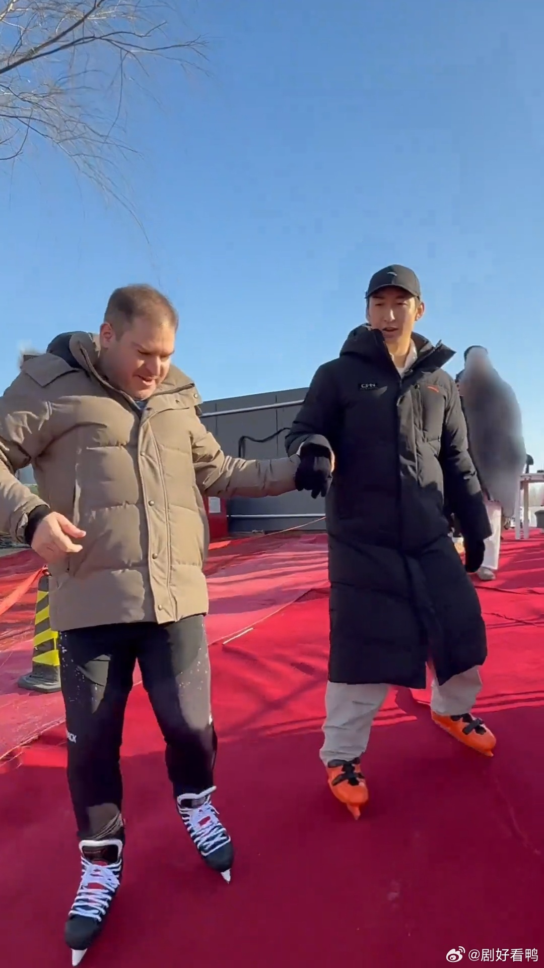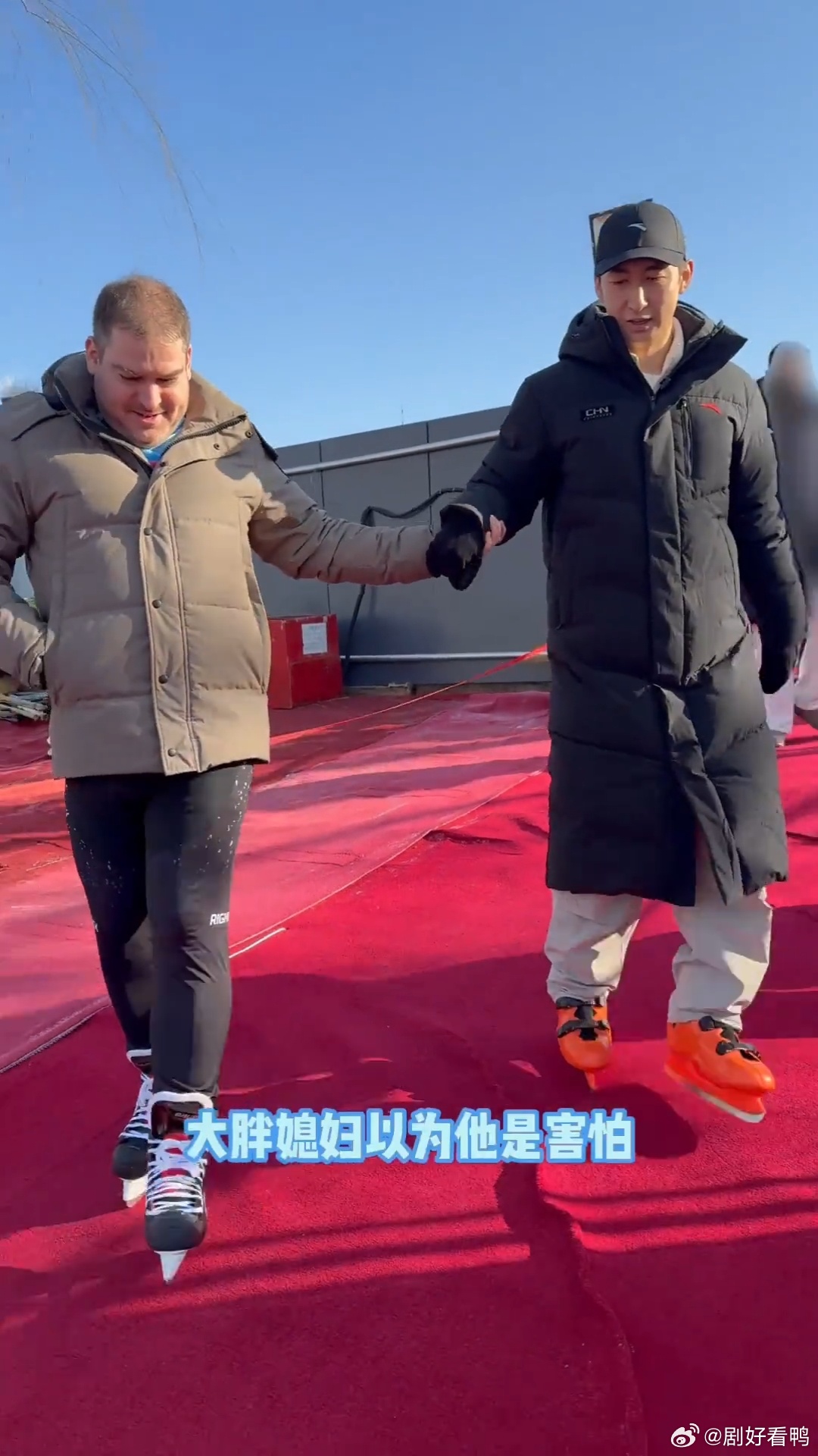 武大靖回应被大胖媳妇教滑冰 原来武大靖全程配合是因为不忍心打断对方啊,不过换做是我也抵挡不住大胖媳妇如此热情的举动了 周五晚高疯