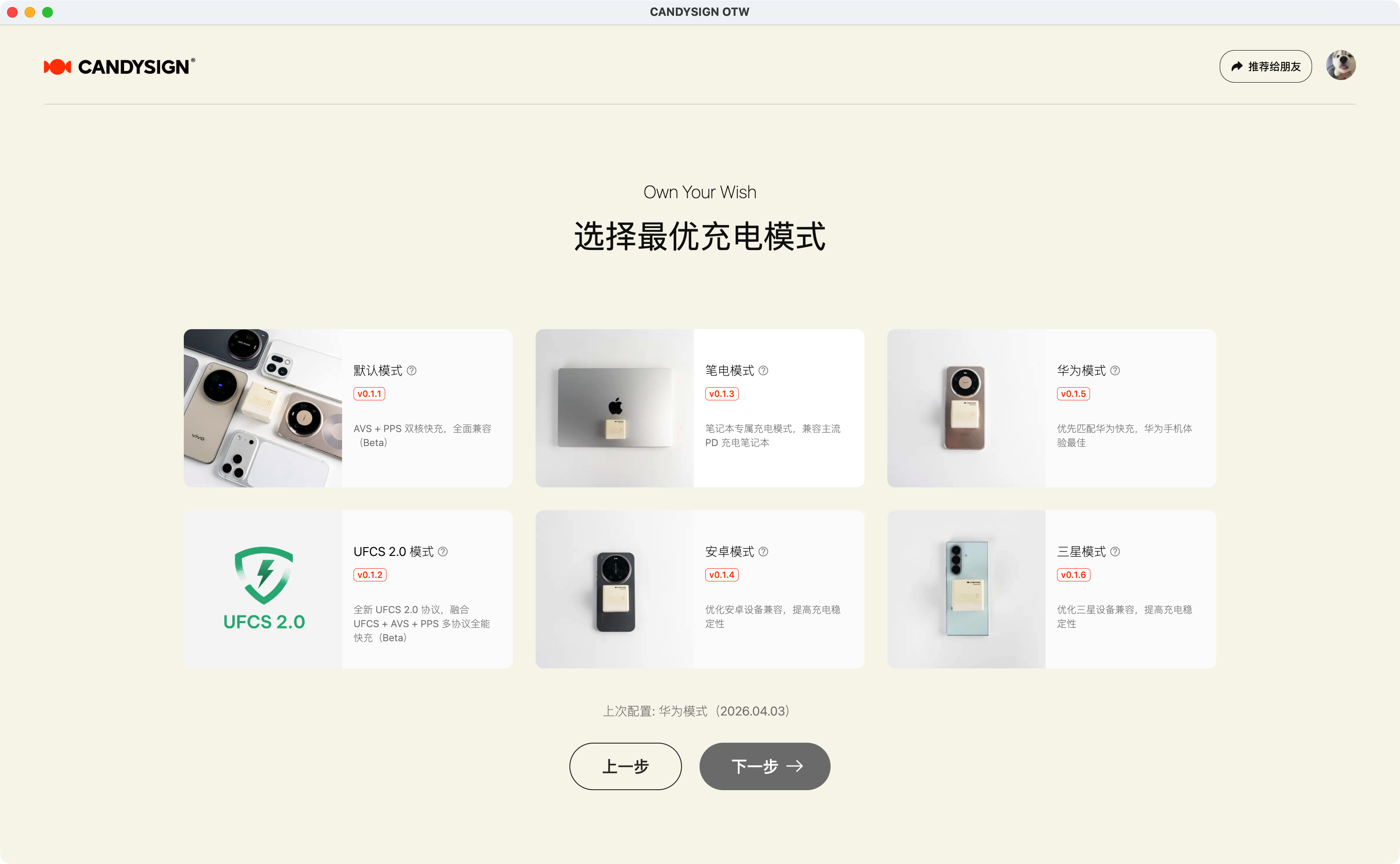 这个小东西可以给你充电头进行OTA,以及配置相关设备快充。比如你华为设备多,你就可以选择华为模式,笔记本用的多就选择笔电模式。