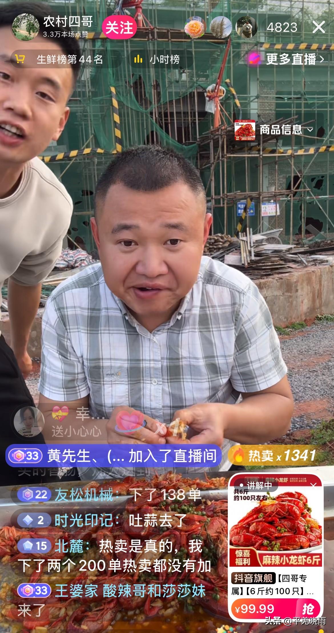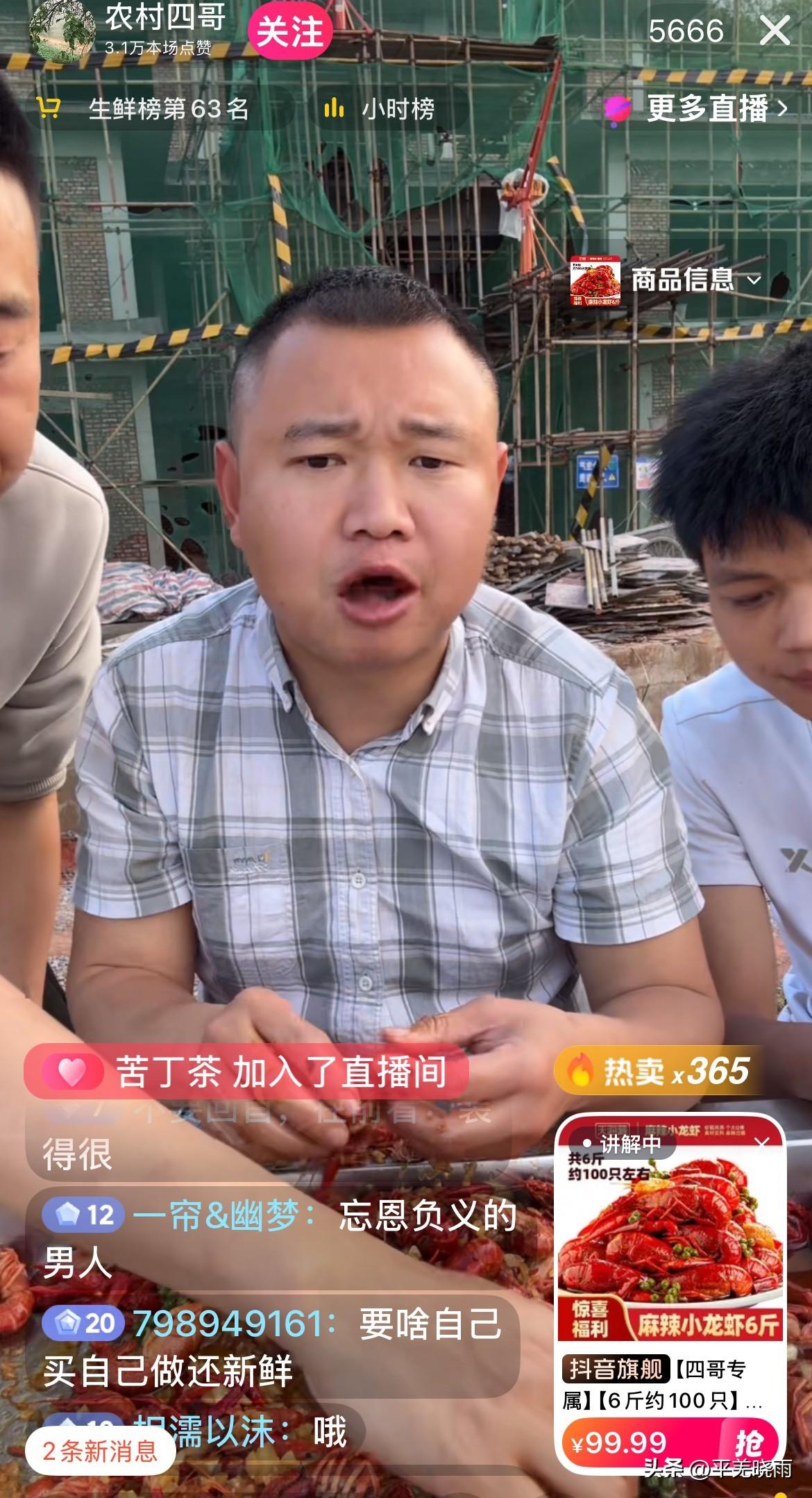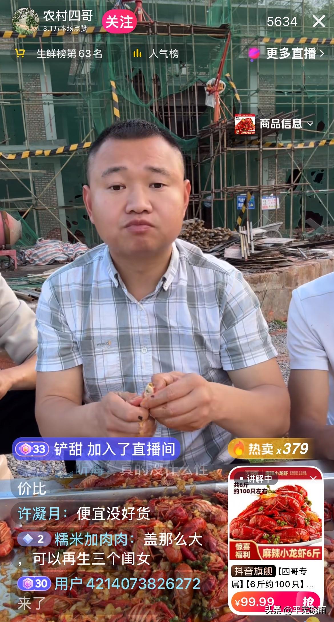 面对粉丝的疯狂提问,四哥不为所动,一心专注售卖小龙虾。