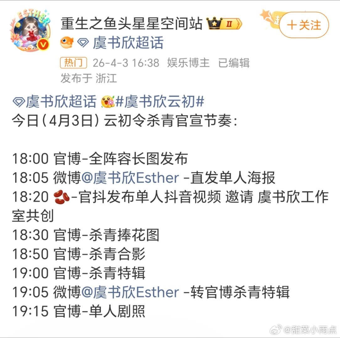 虞书欣 张云龙《云初令》官宣阵容我问个问题,还有没有别的什么剧是这个点官宣的🥲官宣这种事情不都是上午吗?看得出来🐟对这部剧很看重了,热搜不少