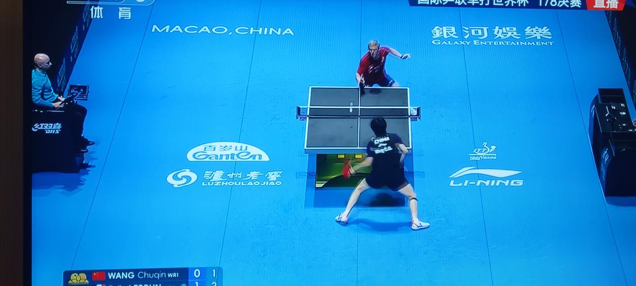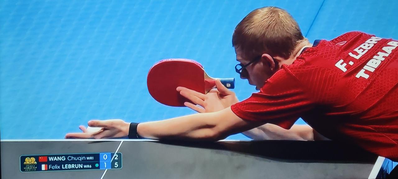 第一局头哥进入状态很快,一路领先,不料末局被小勒布伦追成10平并逆转了首局,非常遗憾。第二局头哥2:7落后,头哥奋起直追,以高超的技术和过人的胆魄,11:9逆转了比赛,扳回一局。第三局头哥3:7落后,又开始拼命追分,将比分追至7:8,小勒布伦把握住了关键球,11:9再下一城。第四局头哥一改第三局和第四局开局不利的被动局面,比分一路领先,11:5强势再扳回一局。