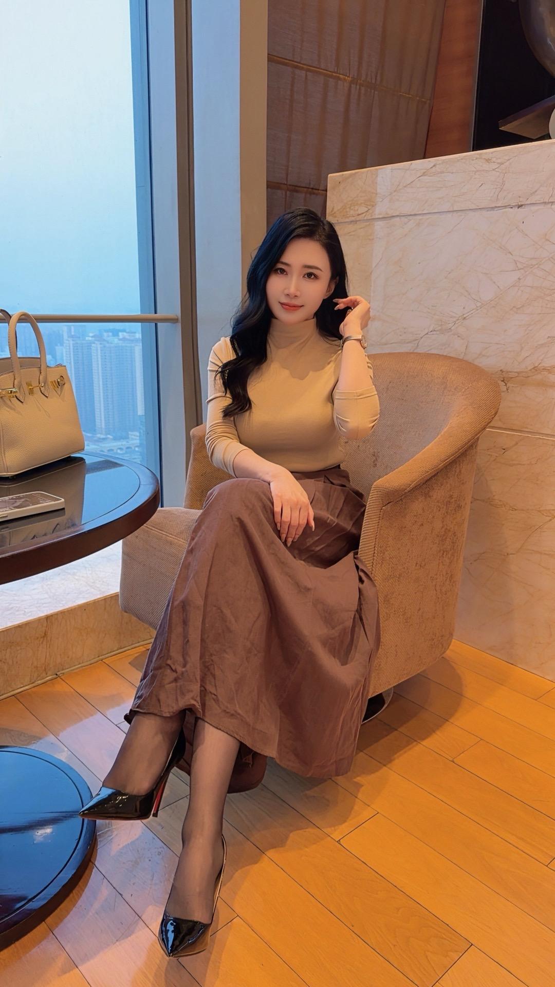 优雅气质穿搭,棕色皮裙搭配米色高跟靴,尽显时尚魅力!