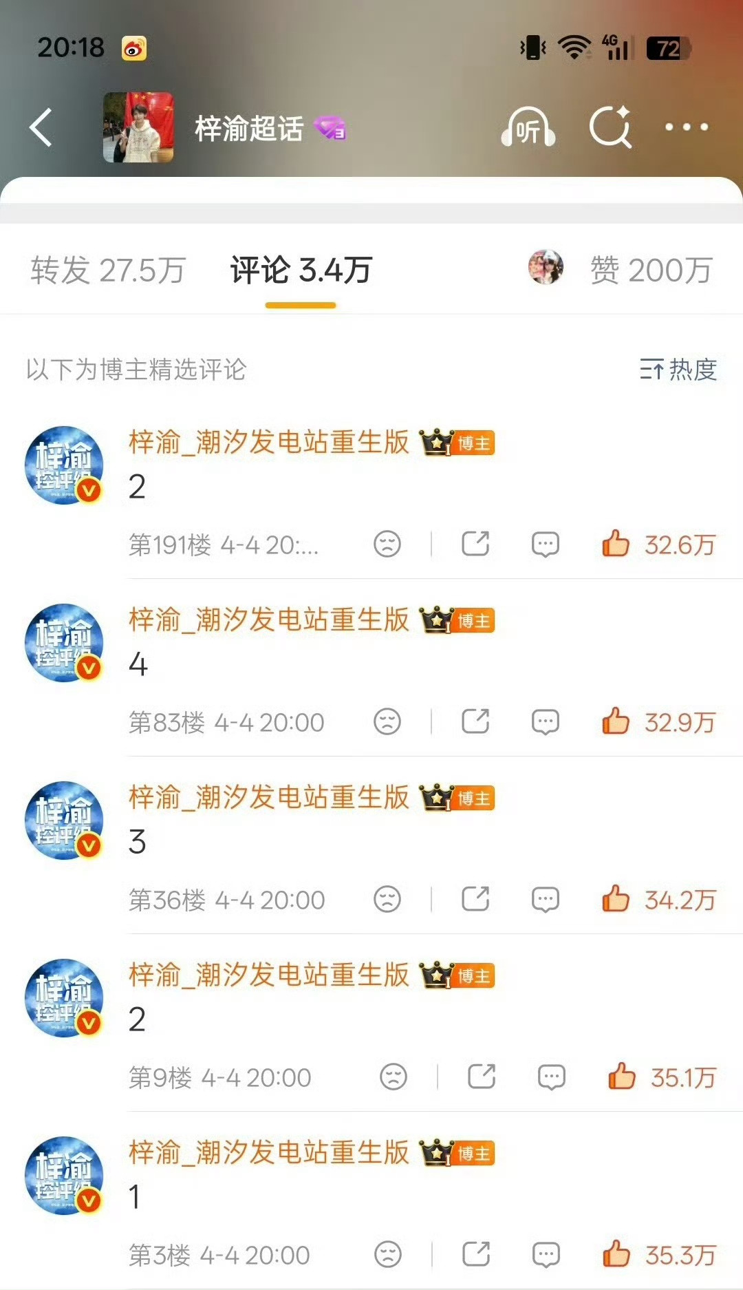 梓渝粉丝今晚测su5分钟100w18分钟200w30分钟238w