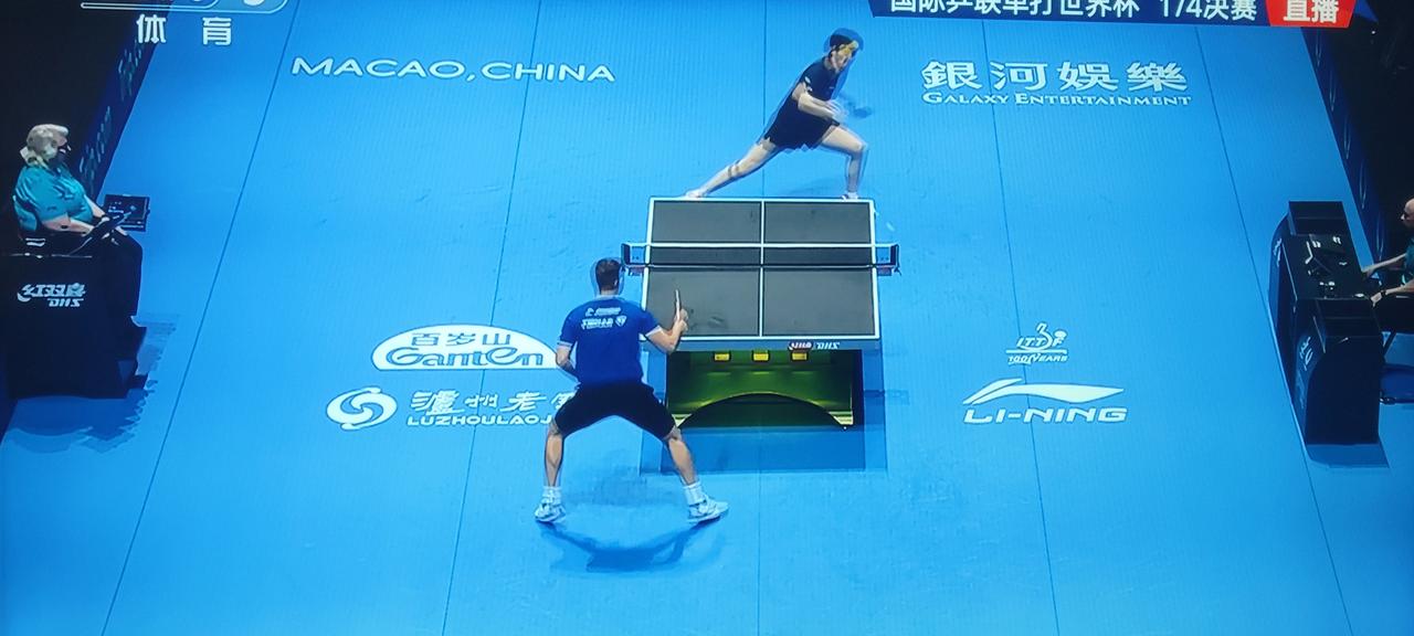 第一局头哥进入状态很快,完全占据场上优势,很快以11:4速胜达科。第二局头哥一路领先,在中局过后被追成7平、8平、9平,达科把握住了关键球,11:9逆转了比赛,扳回一局。第三局头哥受到第二局被逆转的影响,开局不利,2:5落后。后面头哥虽有追分,但为时已晚,7:11丢了该局。第四局双方争对得异常激烈,比分交替上升,十分胶着,末局达科10:8率先拿到局点,头哥追了一分,但仍以9:11落败。