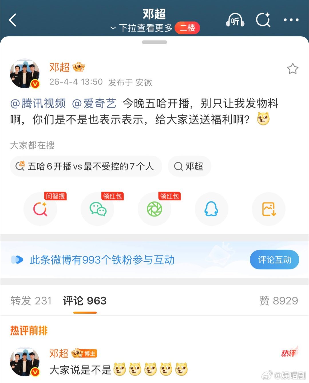 邓超一句话让腾讯爱奇艺打起来超哥一句话,这种为了宠粉疯狂送会员的商战,请多来点,
