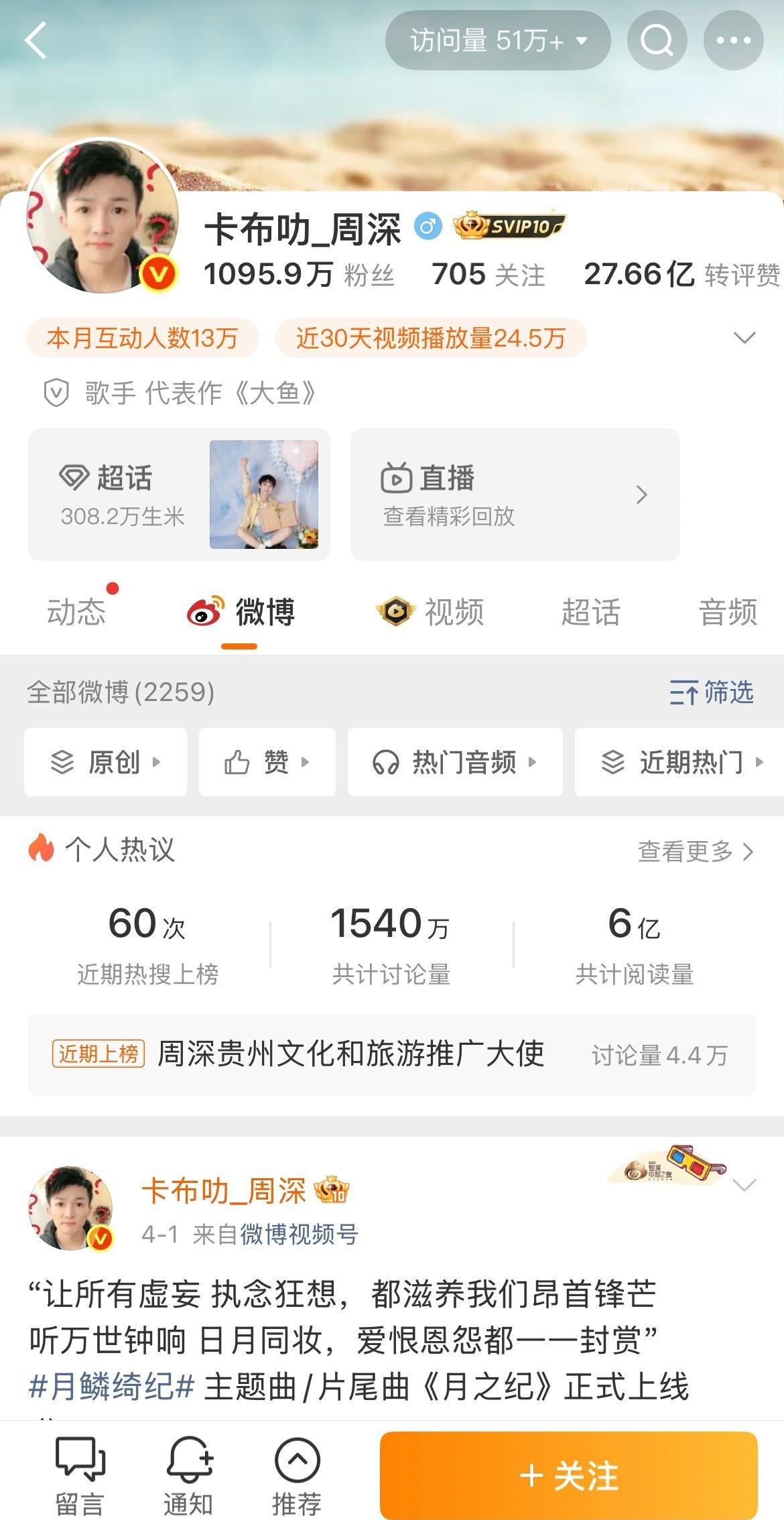 单依纯 周深微博主页极致反差[泪奔]