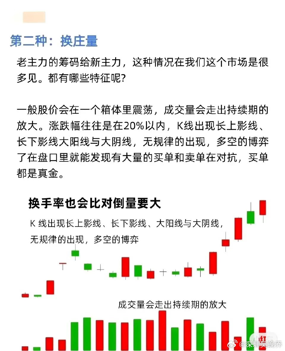 这是老主力的筹码转移给新主力的常见形态,特征如下: