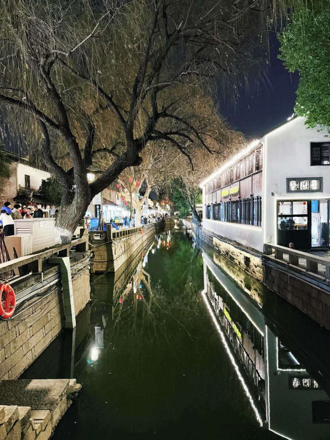 📸坦白说,夜游真的不好出片📸,光线暗、人又多,相机拍不出肉眼看到的万分之一温柔。但正是这份不完美,才让平江路的韵味拉满——不用赶时间摆姿势,只需要沿着河边慢慢走,看桥洞的光影、听流水的声音,沉浸式感受江南的夜,就足够治愈。