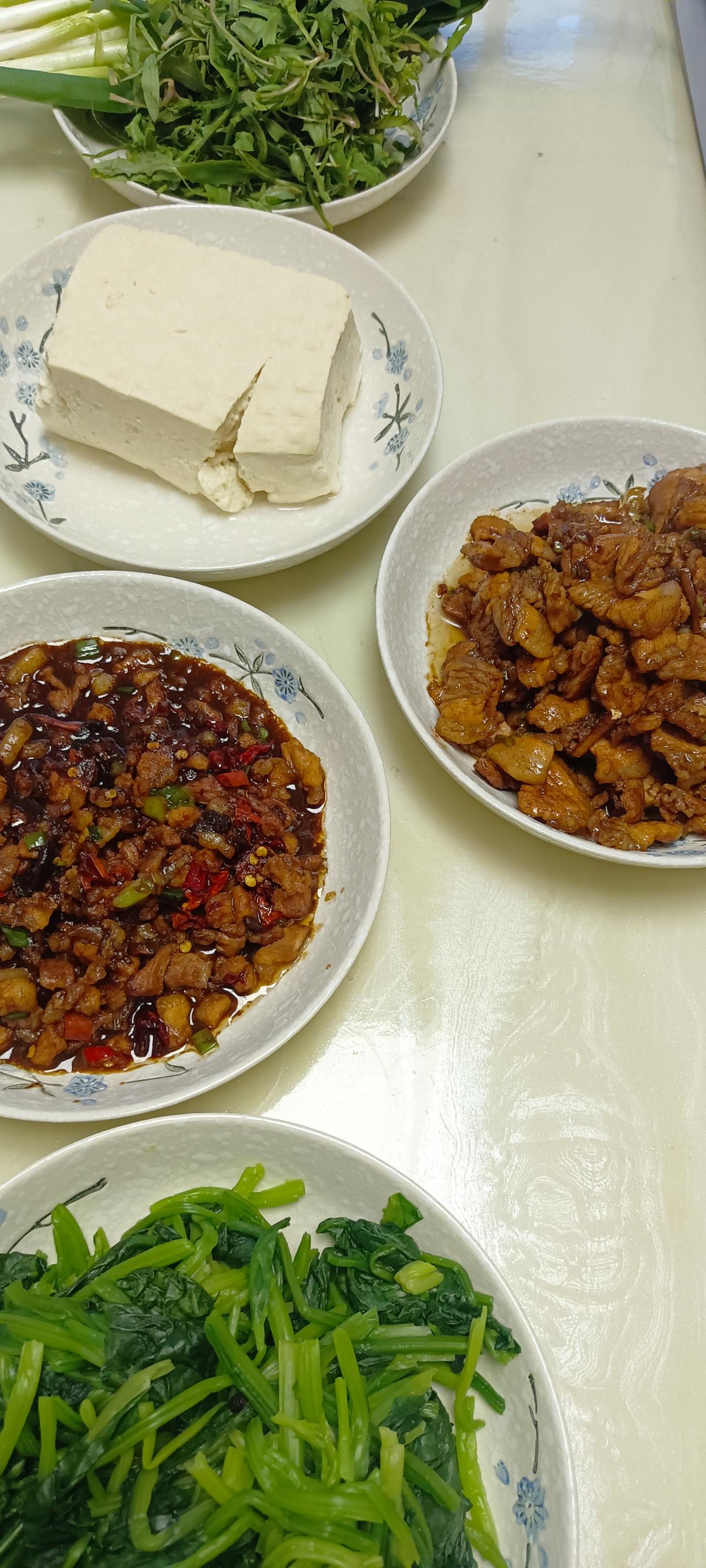 您那里有苦麻菜吗?您吃过苦麻菜吗? 我们这里现在有苦麻菜了,今天晚上,我买了点,五元钱一两,是不是很贵? 苦麻菜五十元一斤,好猪肉八块钱一斤。 我老公特别喜欢吃苦麻菜,基本都是买,自己去挖的时候特别少,也没有时间啊! 我妹妹家的院子里就有,有时候她给挖点送过来,还是野生的好。 最近我老公不点菜了,做啥就吃啥。 昨晚念叨着,想肉吃了。 我今早买了五花肉,给他炒点,又炸肉酱,买了点苦麻菜和小葱,还买了菠菜,用开水焯了一下,蘸肉酱吃。 特意炒了一盘五花肉,很简单,就是放了点十三香和酱油,原汁原味的。 主食是小米水饭。 我减肥,不吃晚饭,他自己吃饭呢! 他说肉炒多了,苦麻菜买少了。 我买了八块钱的苦麻菜,炒了一盘肉,也差不多八块钱吧。苦麻菜不够吃,肉吃不了,都剩下了。 要是放在我们小时候,说一斤苦麻菜能换六斤多猪肉,那都是天大的笑话!谁都不信! 只能说这世界变化太快了!