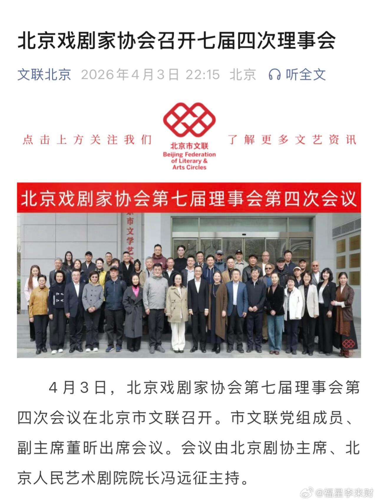 履职尽责阿云嘎理事参加北京文联戏剧家协会理事会会议[鼓掌R]2026.04.03