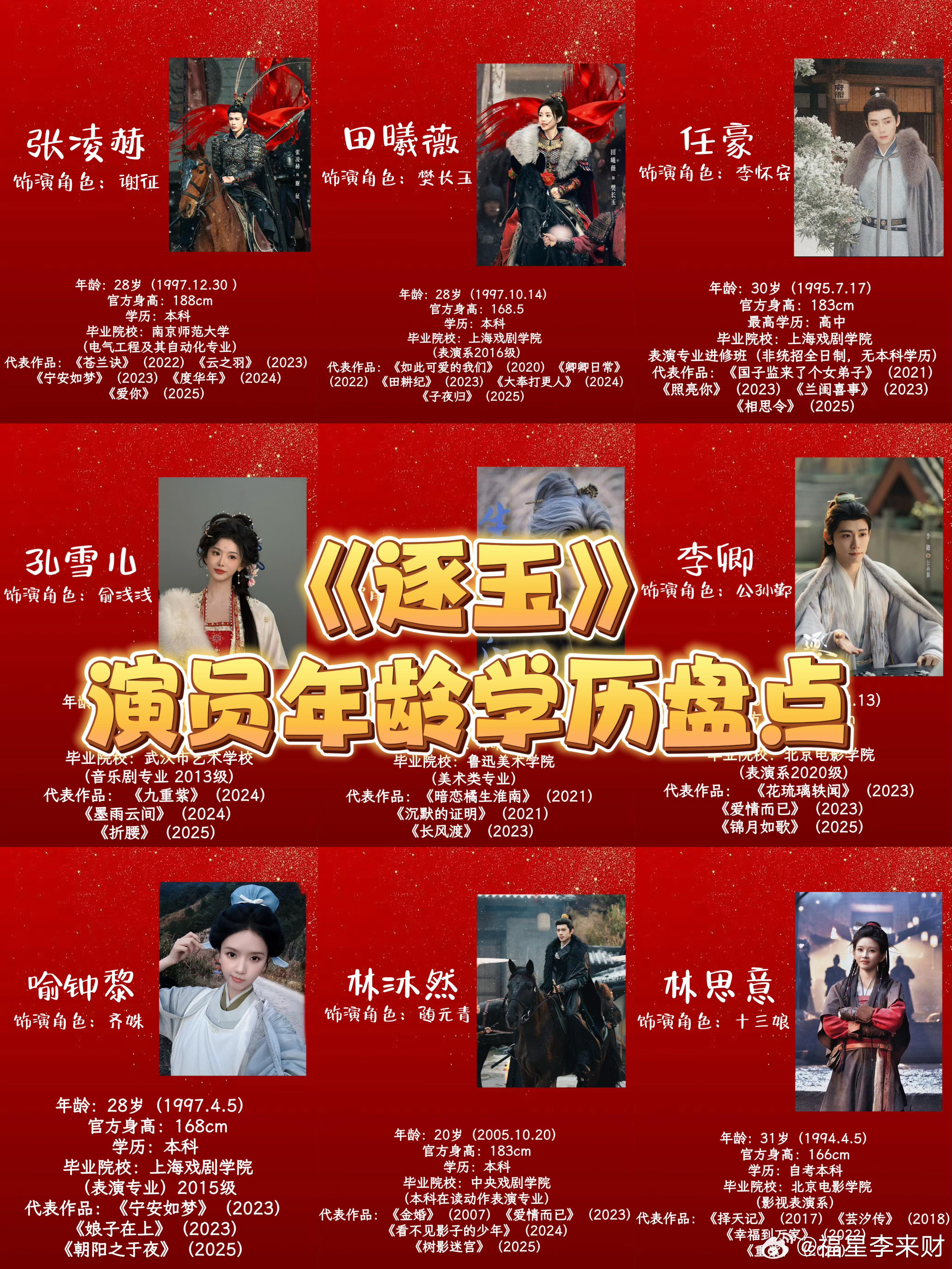 《逐玉》演员年龄学历盘点!