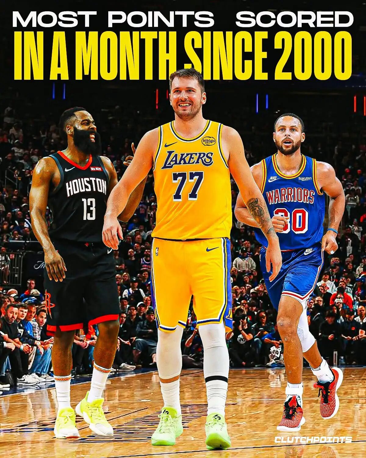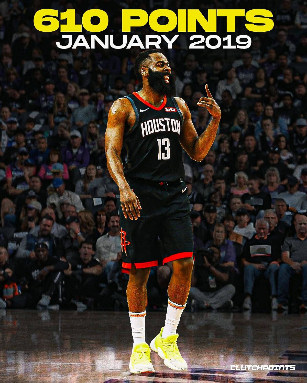 篮天下 2000年至今的球员单月总得分排名,巅峰胡子登!Images via C