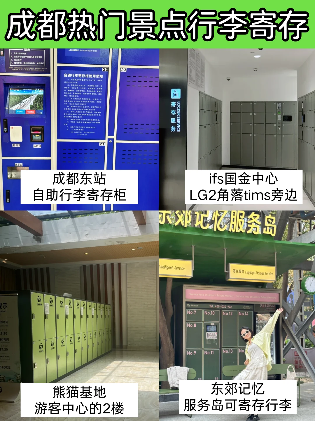 5⃣次游玩经验换来的忠告:去成都真的不要背包⚠⚠……尤其是拖着行李箱(坐车太不方便了➕安检麻烦➕重)和书包的(地铁安检麻烦➕勒肩膀),玩几个小时直接累瘫😭😭!!!大家打卡景点的时候可以把重要物品寄存哦🛅各个景区附近都有哦,给大家总结了一些寄存柜,话不多说看图!!