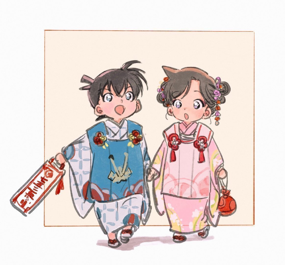 名侦探柯南小时候的新一小兰 青梅竹马可爱情头新兰画师Twi:umi_fav_rt