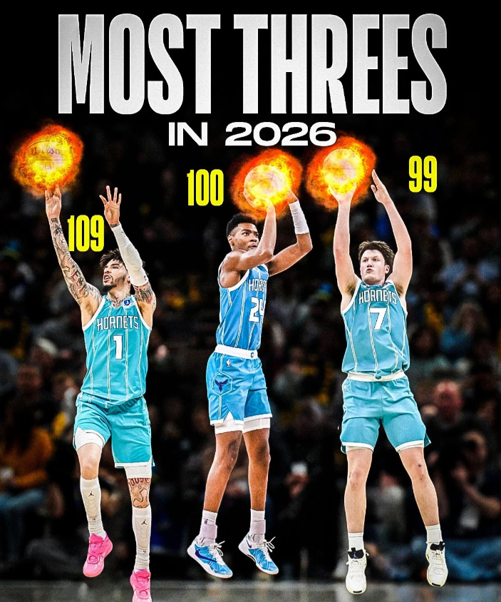 同时,黄蜂队的米勒本赛季也投进了195记三分,黄蜂队本赛季常规赛还剩3场比赛,有望成为NBA历史第4次同一球队单赛季有3名球员投进200+三分。
