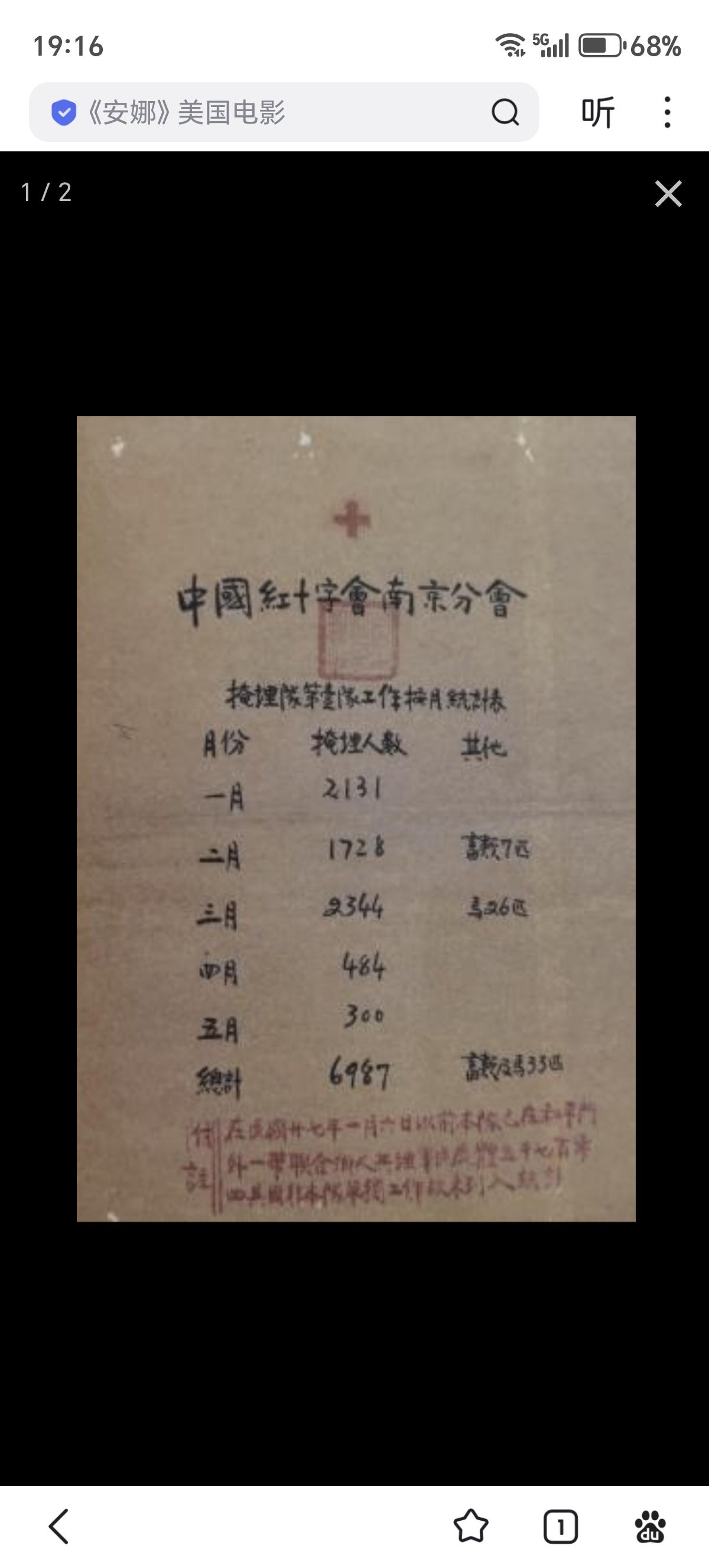 中国红十字会南京分会1937年12月至1938年5月间组织两个掩埋队,主要在下关及沿江一带,计收埋遇难者尸体22600余具。此为该会第一、第二掩埋队的按月统计表。