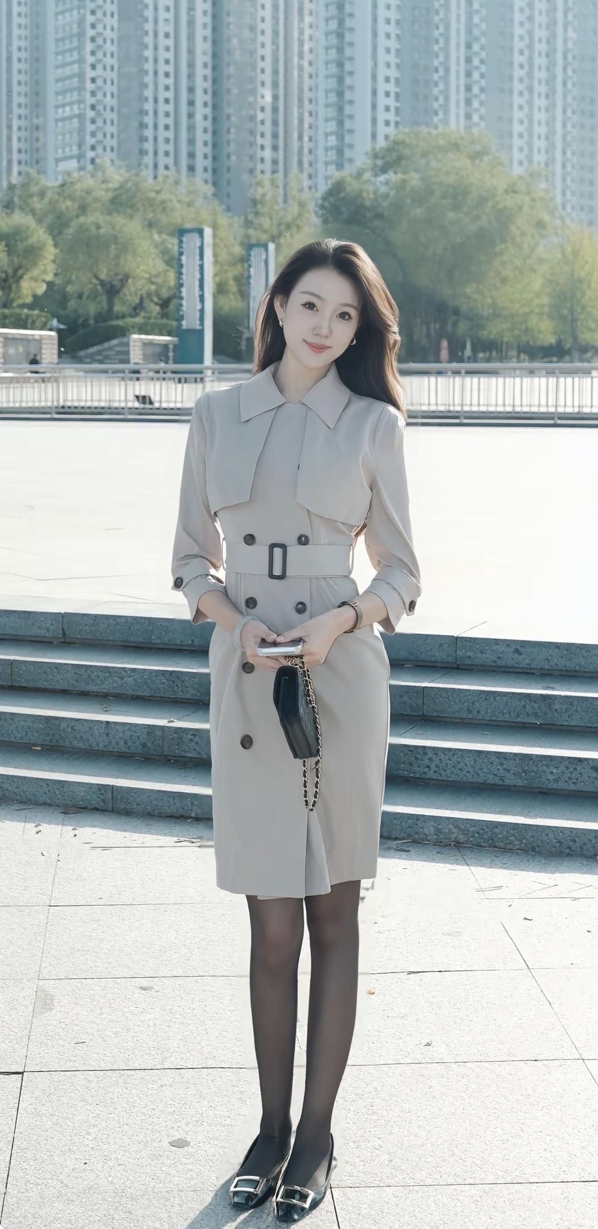 优雅职场风,米色双排扣连衣裙,都市时尚感!
