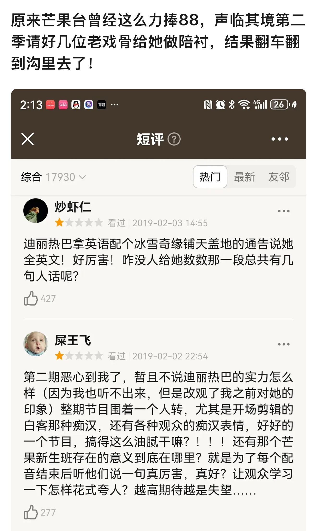 原来芒果台曾经这么力捧迪丽热巴,《声临其境》第二季请好几位老戏骨给她做陪衬,结果直接翻车了…